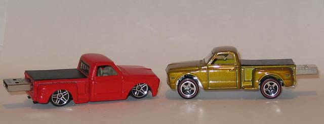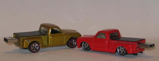 For no more than the cost of a plain old flash drive to stick in your pocket, there's no need to settle when you can own an AutoDrive™. 2006 satin black/flamed Chevy Silverado with 1GB USB flash drive built in. Transport music, photos, and other files between computers by popping them onto this flash drive via the USB port (USB 2.0 and 1.1 compatible). For fans of Hot Wheels and other die cast vehicles, Chevy and GMC pickup trucks, Blazers, and Jimmys, this flash drive makes a great novelty gift. ) Note: I can ONLY accept NON-Credit Card payments (either from existing balance, eCheck, or Instant Transfer from your linked checking account). $19.99 + shipping, at only $1.82 for USPS First Class mail with Delivery Confirmation. |