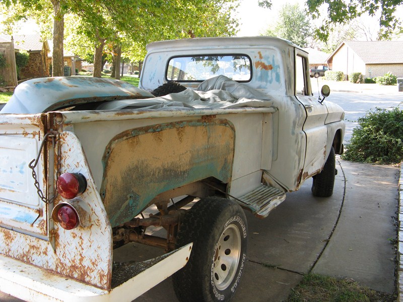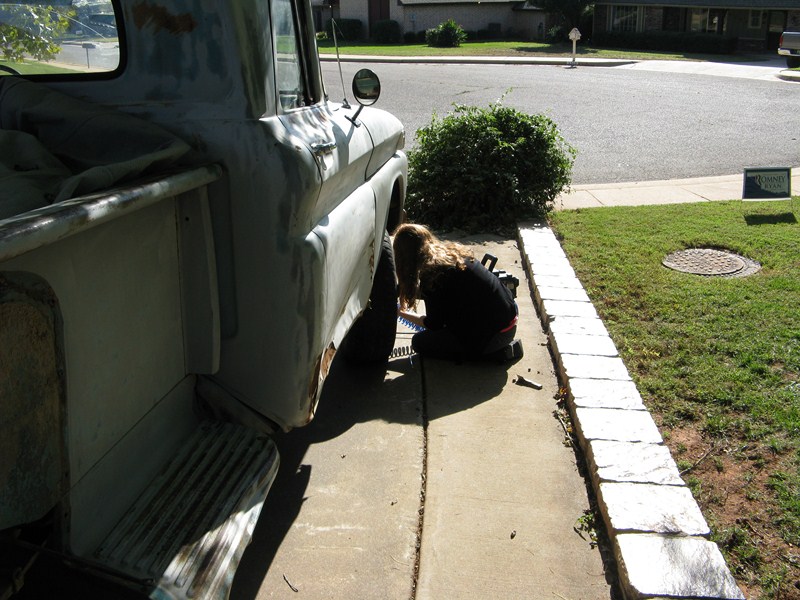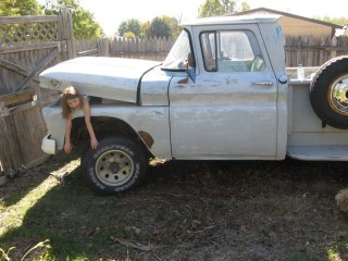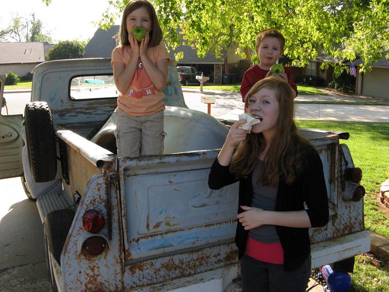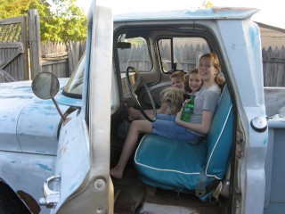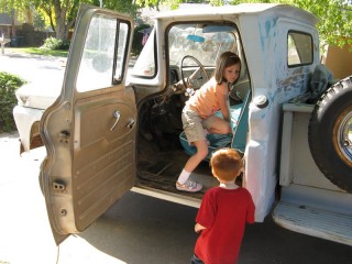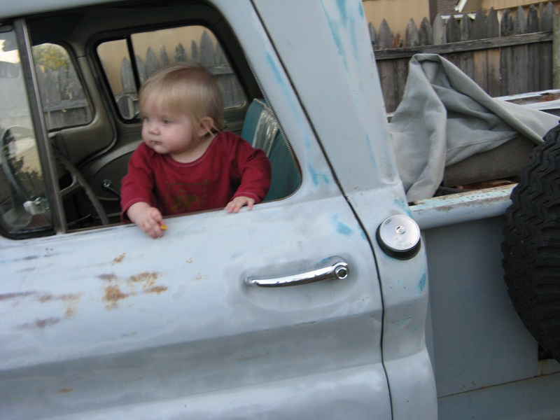 Don't google it. The rest of the song isn't really for all audiences :lol: "Cecilia, you're breaking my heart! You're shakin' my confidence daily!" http://windypix.com/?di=PTRM.jpg The name came to me as I was trying to get her started and the song kept playing through my head. And it kinda fits. We've been trying it out for a while now. It "feels" right. Previous owner said everything was original except for a little mud in the corners and the turn signal, which broke on him and he couldn't find a replacement. It has an alternator too, but I didn't have the heart to tell the old timer that they came with generators. And I don't mind, thought I'd kinda like to have a generator some day. These pix are a bit newer because she has her fenders off. They were removed prior to transport. I'll have pix of that soon. I like to do "step by step" documentation so it'll kinda be like that i guess. http://windypix.com/?di=ECPH.jpg My youngest driving http://windypix.com/?di=AM93.jpg The seat is a style I haven't seen before, though it looks like it has been clipped to the springs since heck was a pup http://windypix.com/?di=J4NR.jpg Kids making memories and butt-prints http://windypix.com/?di=VHBV.jpg Kids driving and playing "What's this lever/button/knob do?" http://windypix.com/?di=PFS3.jpg Eating apples in the bed. Something about "Cecilia" makes the kids hungry. In the first week we've had snacks on her five times, lunch three times, and dinner twice. Wife wasn't home :lol: http://windypix.com/?di=EPEQ.jpg This is one of my best little helpers and the most ardent supporter of my buying Cecilia. I think she's angling for an inheritance. http://windypix.com/?di=FX9V.jpg My plan right now is just to get her up and running well. Today was bolting the cowling corner back on, airing the tires and moving her to the backyard so I can work in private. I'd like to paint her back to the original color too but any talk of paint and the kids get all weepy eyed. They're patina fans and I haven't even talked to them about "patinas". They just like the look. We'll see how that goes. I also want to add PS because she's a longstepper and she turns on a half dollar. Whew! This might end up going anywhere by the time it's over. Flames and a flux capaciter anyone? http://www.roligaprylar.se/blogg/wp-...-capacitor.jpg With my hip being what it is my oldest helper volunteered to air all four tires for me so i don't have to get up and down. And she hates getting dirty. She's a peach. http://windypix.com/?di=BEBF.jpg This weekend is a carb rebuild and a general cleaning. Perhaps some brillo on that crappy rattle can primer. Next weekend I'll replace that passenger window and work on getting the original AM radio with the letters GMC on it running. If you're working on these old trucks and haven't sampled the same music the guys that built it were listening to...well, you're missing out! :metal: Funny story, right now while we tinker with her we're piping an old record out the window, "K-Tel's Looney Tunes, 24 Great Hilarious Songs" http://windypix.com/?dm=ZLMU.jpg Our Playlist: Code: