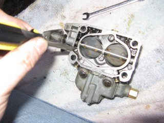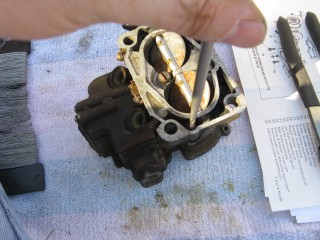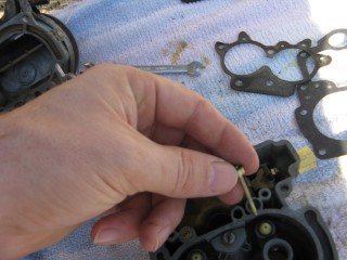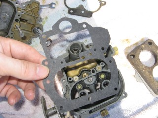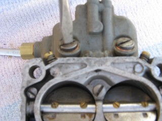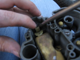 http://windypix.com/?dm=FL9I.jpg The block goes on top of that gasket. http://windypix.com/?dm=0VJN.jpg Then another gasket to seal it to the intake manifold. http://windypix.com/?dm=SOJ8.jpg Now flip it back to where you can see the mixture screws pictured below. There are two, one on each side of the float bowl. Put your screwdriver in one of them and hold it very loosely. This is so that you can tell when it gets lightly seated (snug, not tight!). Now turn it clockwise and COUNT the turns, quarter turns, or half turns etc. as you tighten them. REMEMBER THIS NUMBER. Write it down if you need to. (This picture was taken after remounting b/c I forgot to reset them myself while it was off) http://windypix.com/?dm=B2CO.jpghttp://windypix.com/?dm=67IB.jpg Once they're very lightly snug you now need to back them out one full turn. That's 360 degrees. That is how they should be set for life. Forget they exist now. Unless it runs like crap afterward, then go back to what they were and see if that fixes it. You remember what they were, right? You wrote it down. I just know you did. :D At this point we can move back to the engine bay. The end is in sight! Remove the rag you put in the intake now. Be sure to jerk it straight up so as not to knock something off of your dirty engine into the intake. http://windypix.com/?dm=Q69G.jpg Then place your first gasket, your block (if you have one), and your second gasket (again, if you had a block) on the bolts and line them up. http://windypix.com/?dm=Z2CD.jpg Set the carb down on it's new perch. http://windypix.com/?dm=52XC.jpg |