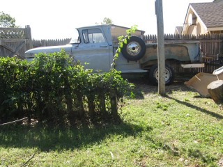 "They're Coming to Take Me Away" by Jerry Samuels aka Napoleon XIV We did finally get her running enough to move to the back (shown above) but I ran outta gas midway through the gate. :lol: It's a good thing these great old trucks can bump forward with the starter if necessary. The gas tank was covered by the fence. 5 gallons of pure gas (no ethanol) later and she was running-ish again. At least enough to backed her into her new home. http://windypix.com/?dm=3LPD.jpg |