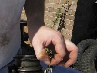 http://windypix.com/?dm=Y8OH.jpg Then it's on the carb mounts. Again I like to tighten them opposite, like a wheel. I tighten them good and snug again. Not tight, just snug enough to pinch the gasket. http://windypix.com/?dm=N8LM.jpg Then attach the throttle cable to the top and tighten the screw. http://windypix.com/?dm=MNYI.jpg Attach the rear clamp and tighten. Remember it has that little nut on the underside so don't unscrew it much. http://windypix.com/?dm=F7CZ.jpg Connect the large spring to the linkage shown. http://windypix.com/?dm=WR83.jpg Hook up the fuel line. http://windypix.com/?dm=67KV.jpg And finally fire it up and see if it runs. It has zero gas in the float bowl so remember that it might not start quickly the first time. After you get it to fire up it should start easily after that. If it runs put the air cleaner back on it. My photographer had a problem with the loud motor running so it's a little off center lol. http://windypix.com/?dm=GQQY.jpg A little note about the air cleaner. I had intended to clean it as well but I ran out of weekend and painkillers so it got pushed back to next weekend. Sorry about that :( If all went well the last step is to take the kiddos and the ugly mutt for a spin around the block! http://windypix.com/?dm=XZVI.jpg Congrats, you just rebuilt a carburetor! If you noticed something I did and shouldn't have done, or missed doing entirely, speak up! This was my first carb rebuild. I enjoyed it quite a bit. My only issues after mounting were gas coming out of the carb piston hole and a rough idle, both of which were fixed by adjusting the float then adjusting fuel mixture screws as described earlier. My mixture screws were an entire revolution off. Next up - some light engine cleaning... |