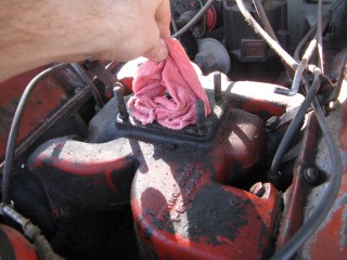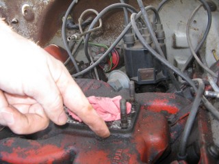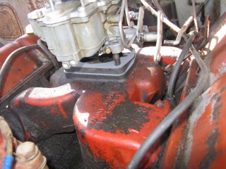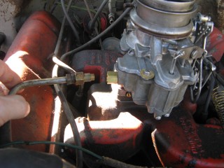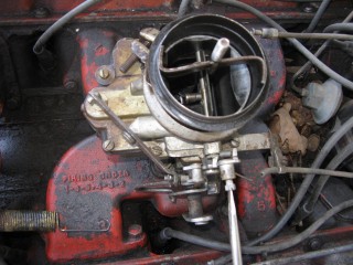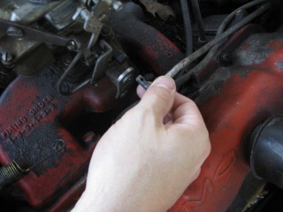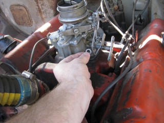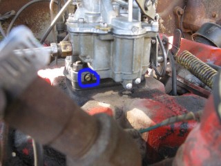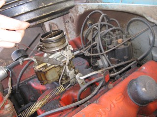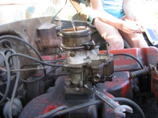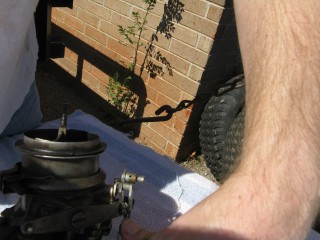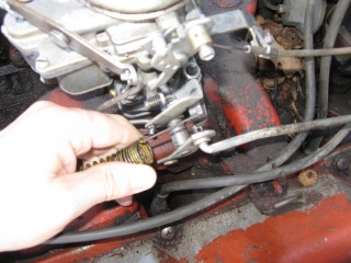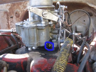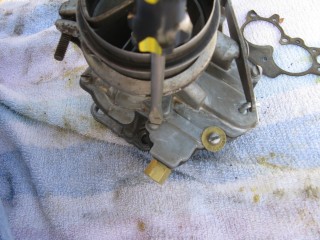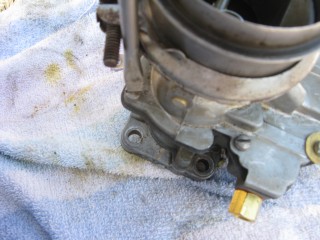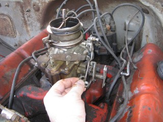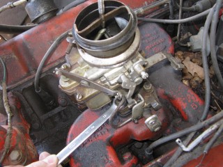 Click any of these images to see a larger version. http://windypix.com/?dm=9KIG.jpg I always just set the nut on top of the air cleaner so I don't lose it. This won't work if you don't put the air cleaner in a safe place though. Watch for gremlins stealing those wingnuts. They're like candy to them. http://windypix.com/?dm=VPQR.jpg Then just lift the entire air cleaner away. OOOh, Ahhhh! http://windypix.com/?dm=IM3Z.jpg Next we remove the gas line. If your large brass connection isn't very tight then you'll need to use two wrenches to remove the smaller brass fitting, with one holding the large fitting stationary while the small one turns. I'm using a 15mm and a 13mm shown here. There *could* be a screen in here so be careful. Mind did not have one. Gremlins, I tell you. http://windypix.com/?dm=5J4F.jpg Now unhook the large spring. I don't know all of the official terms for everything so we'll call this the Large Throttle Spring Of Doom. Be careful because it is under tension. Tension is what gives it a hunger for blood. http://windypix.com/?dm=LCFU.jpg Then pull free the linkage (metal bar) that the Large Throttle Spring Of Doom was hooked into. http://windypix.com/?dm=C63R.jpg At this point I reached around the back of the carb to remove the brass fitting that runs to the vacuum advance. Here I'm using a 12 open ended wrench. http://windypix.com/?dm=A1BV.jpg Now come back to the throttle linkage. Unscrew the top screw just a couple of turns. This screw holds the wire that's poked through underneath it. We're just wanting it to let go of the wire, we're not trying to remove the screw. http://windypix.com/?dm=7D8M.jpg There's another screw that we need to loosen directly behind the one we just did. There's a nut on the back end of it (indicated by my ugly finger) so don't unscrew it too much or you'll be chasing it down a spark plug hole. Just unscrew it a couple of turns and disconnect the cable by pulling it out to the side. http://windypix.com/?dm=VL4U.jpg Here's me pulling it to the side. I bet you're glad you saw this. You're so well informed. http://windypix.com/?dm=VIY6.jpg Now pull the little wire free from the top. It MAY be bent around to help hold it in place. If so just unbend it. It doesn't need to be bent if your screw is tightened properly anyway. Leave it straight. Straight is how God intended. http://windypix.com/?dm=IES9.jpg Congrats! At this point we've removed all of the "stuff" hooked to the carburetor! Pat yourself on the back - well, no. Your hand is filthy. What's wrong with you? Born in a barn? Ask someone else to pat you on the back. That will also give you the opportunity to tell them how manly and tough you are for making it this far. Ohhh Yeahhh!! http://windypix.com/?di=7IYO.jpg Ok, back to work, Superman. You've only got four nuts left and you're in the clear! I'm using a 15mm wrench to remove these. DO NOT DROP THE NUTS. They're very difficult to fish out of the spark plug holes. Where Gremlins live. And they bite. Remove the nut located here: http://windypix.com/?dm=S95W.jpg And here (don't mind my Photographer in the background): http://windypix.com/?dm=4L7Q.jpg Then here: http://windypix.com/?dm=75DT.jpg And finally here, under all that spaghetti we just took loose. http://windypix.com/?dm=N5VN.jpg My carb had lock washers, but only on the front two bolts. Again, do NOT DROP THESE or you'll have a heck of a time fishing for them in spark plug holes. Don't believe me? Go ahead Mr. Know it all. Drop one. I double DOG dare ya! http://windypix.com/?dm=4ON5.jpg Now just lift the entire carb up and off! You'll be left with this. http://windypix.com/?dm=FLUR.jpg Eww. That's anticlimactic. Here's what it looks like with the bottom plate removed. You can see how tall the lip is without the plate. Now is a good time to poke a clean(ish) rag in the intake hole so you don't drop crud down there and ruin your engine. http://windypix.com/?dm=FW3M.jpg My bottom plate had this really cool homemade gasket on it. It was made from what I assume was the box that the previous carb repair kit came in. It looked about like a cereal box only much thinner. They just tore off a piece and mashed it on the bolts. There were little bits of superthin cardboard everywhere. http://windypix.com/?dm=S8NU.jpg I pulled off most of the cardboard but several pieces were pretty stuck. They'll come off in the dip though. With the carb removed and placed on these very manly pink and turquoise towels that my wife donated to my project, we'll get back to the dissassembly by straightening and removing the cotter pin shown at the top of the remaining linkage. Sort of...My photographer had a hard time fixing the shot in the bright sunlight. :) http://windypix.com/?dm=FWQ4.jpg http://windypix.com/?dm=4AWP.jpg These cotter pins were very thin so bending them with a thumbnail was no trouble. Now we remove the lower cotter pin. http://windypix.com/?dm=GN56.jpg Remove the final bit of linkage. http://windypix.com/?dm=N2WR.jpg Now we remove the riser off of the "air horn", which is a fancy way of saying the top tube off of the carb. This screw has a nut on the other end, but it's clamped in there. You shouldn't be able to lose it, but don't try really hard just in case. http://windypix.com/?dm=D8H5.jpg Now just remove the riser by pulling it straight up. http://windypix.com/?dm=JD59.jpg |