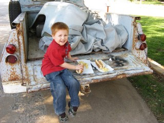I'm very lucky to have these little curtain climbers. This is a great opportunity to get them outside with their dad. :) My future wrench turner trying the seat out http://windypix.com/?dm=CPFO.jpg Lunch on the tailgate with my son. It doesn't get any better than this. http://windypix.com/?dm=69GT.jpg My son and my "powder puff mechanic" taking turns. The seat is like a trampoline due to it's age. http://windypix.com/?dm=A9JM.jpg My powder puff mechanic posing with my busted up old tailgate. http://windypix.com/?dm=LOJG.jpg My oldest trying out the wheel. "What's this other pedal for?" Ha ha http://windypix.com/?dm=3R81.jpg And finally the carnivorous Cecilia and my powder puff mechanic being a ham. http://windypix.com/?dm=JAO9.jpg |