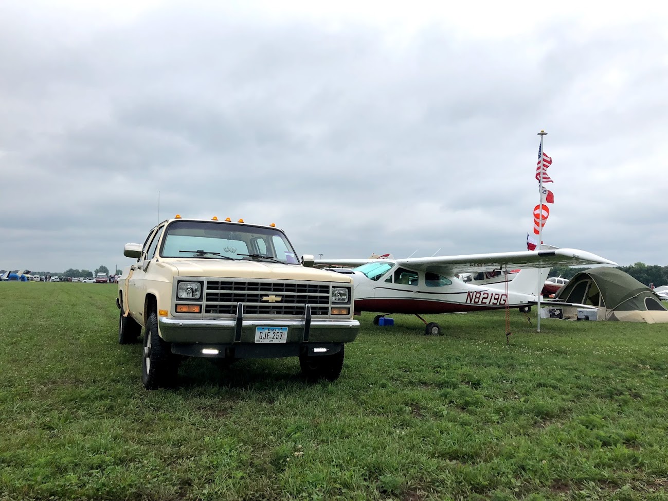 The timing worked out such that the transmission was installed and driving again about 2 days before I was supposed to leave for NY. Day 1 I had to take Belle to the muffler shop to get the custom exhaust installed. Then the rest of the time was spent cleaning things up, packing up for the road trip and going on one or two more tuning runs. Setting off on such a long trip with only about 50 miles on the engine and 10 miles on the transmission was definitely a calculated risk!!! Well, I'm pleased to say Belle made the trip with flying colors, getting around 12.5mpg... not too shabby for a 383 and 4.10 gears! Of course I brought my tools along, and did end up needing to make a few minor tweaks/repairs here and there along the way. The biggest problem actually was the ONE part of the drivetrain that I HADN'T fixed yet: the rear end blew out the input shaft seal and made a giant mess all over the undercarriage.... what are the odds??!? Thankfully I was able to keep it topped off along the way out there, and looked up a reputable rear end shop in Buffalo to get the seal fixed for a fair price. All good! Of course, the whole reason I brought the truck out there was to let my dad drive it before he went under the knife, and so here was the most fulfilling reward for me on this whole project: https://goo.gl/SB1Kgb "Pops" driving Belle for the first time, 2 days before surgery at the end of June. I'm also happy to say that dad's cancer surgery appears to have been a success, and although there will be some lasting impacts from it, along with a very long road to recovery still ahead of us, he is doing well and slowly getting better each day. I stayed in NY with my folks for about 3 weeks, basically from a few days before the surgery, almost 2 weeks in recovery in the hospital, and then a few days after getting discharged. With dad's health back to a somewhat stable point, it was time to get back home in order to get ready for Belle's next mission: hauling the camper around the Midwest! Both my fiancee Sarah and myself are private pilots (ok, well Sarah is still working on her license, but she has flown solo already, so in my book that's close enough). We're actually also building an airplane together, but that's a whole different story, and one that unfortunately has been put on hiatus for about a year or so, due in no small part to this truck project! Anyway part of being aviation enthusiasts for us involves traveling to Oshkosh, WI every July to attend EAA's AirVenture fly-in and airshow. It's touted as the world's greatest aviation celebration, and we have no reason to disagree. It's a week-long ordeal that sees over a half million people, 10,000 airplanes, and about 40,000 campers. It's basically Sturgis for airplanes... we always meet the coolest people from all over the world, and come home with a thousand stories and great memories. We're fortunate to live only about 250 miles away from Oshkosh, which is a very short hop considering many people travel from the other side of the globe to attend. Either way, we usually fly in and camp with our airplane, but this year we decided to try something different: pull the camper up there and camp with it instead! https://goo.gl/43cRsH Our new (to us) travel trailer, parked at a local campsite just a few days before we set off for a week-long trip, scrambling to get things ready One issue we had right away was that the camper wasn't really ready for a week-plus of boondocking at AirVenture. Since this thread isn't really about the camper, I'll skip the details but just suffice to say we had about three days from the time I returned from NY to install a solar system, battery box, inverter, and all kinds of wiring and minor tweaks to be ready. Somehow we got it all ready in time and set off for Wisconsin as planned on Thursday July 19 (you have to leave early in order to get a somewhat decent spot and have time to get set up, etc etc etc). https://goo.gl/euMEBS Parked at our first rest stop on the way up All loaded up, the camper maxes out close to 11,000lbs, and with the truck running around 7,000 we're pretty much right at the 18,000lb limit these "light duty" trucks can handle. I gotta say, even with the shiny new 383 stroker it was definitely struggling a bit going up and down some of the steeper hills, like the 6% grades in and around the Dubuque area. At one or two points along the journey, she had to grab 2nd gear and labor uphill at around 45-50mph and 3200-3500rpms. Most of the rest of the way though was spent in 3rd, in and out of lockup (maybe 90% in and 10% out) and cruising along at the speed limit. I was also getting somewhere around 6-8mpg. Really, not too bad in my book! Handling-wise, it did great. It's a bumper-pull camper and I wasn't using an equalizer hitch (yet, more on this later), and honestly at least as far as steering and braking are concerned everything worked great. You'd definitely feel strong gusts of wind or the semi coming past you, but it wasn't anything that couldn't easily be corrected for. Given the size and weight of the load I was very pleasantly surprised by this! Temperatures were also solid, especially engine-wise. With a 180-deg thermostat, coolant never got above 190 or so, even on the steepest climbs wide open at 3500rpm in 85 degree weather with the A/C blasting ice-cold. Oil typically hovered around the same but occasionally creeped up over 200 on those high-load situations, but settled right back down again once I got off of it. I think the highest I saw was around 210. The transmission did heat up a bit, especially on the extended second-gear climbs. This was in definite contrast to driving the truck unladen, where the needle would basically never even come off the peg (say 140-ish at the end of a long drive). I saw about 230 for a little while on one section of the trip, and it was much slower to cool down afterward as well. I noticed that the temperatures seemed directly related to whether or not the to