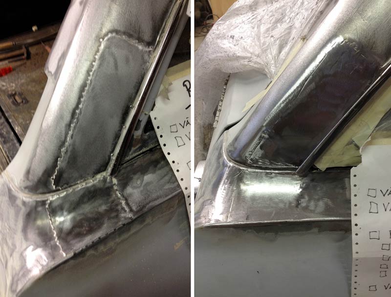 but surprisingly enough, they're not. Only one spot was rusted, and it was here, in to the front of the right hand side rear wheelwell. http://waasadata.com/belair/img/belair015.jpg The holes are for rosette welds, to make it sit and look like the original spot welds. It's functional too. I like to drill the holes pretty big, to get a good weld to the inner fender. This is all welded by now, but I don't have any pics of it at this time. Notice the smart ground lead from the welder in the previous post of mine. A powerful magnet does the grounding, I really like the idea, and might use it some day. |