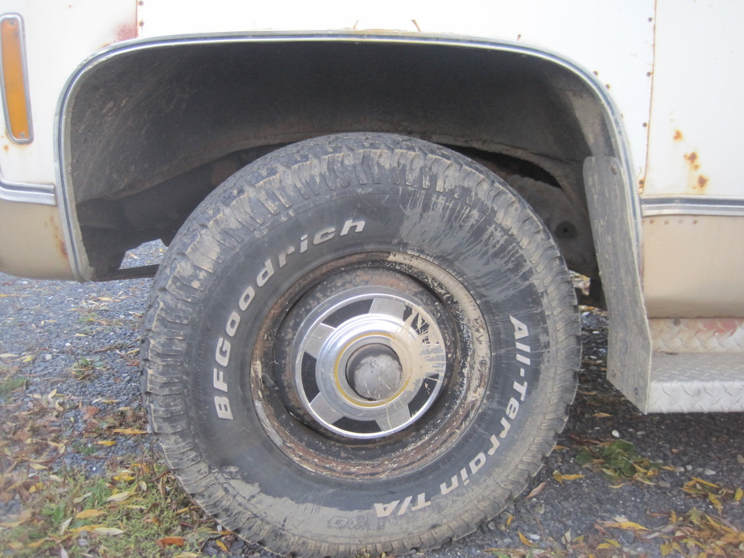 Details - 1978 Silverado K10 Suburban. New crate 350, TH350 with full-time NP203. Stock suspension. http://67-72chevytrucks.com/vboard/a...7&d=1564938837 Wheels and tires are up on the list as I go through the driveline/suspension and try to make the truck as smooth and reliable as possible. I’m chasing rattles and vibrations. You know how it goes. But I want to eliminate wheels/tires from the variables as I do that. The rig currently has stock 15x6 steel wheels and caps and has 235/75R15 Toyo Open Country tires. The tires are 12-1/2 years old. I had them balanced... no help with the vibrations and such. Tread is fine, but I’m not convinced that they’re out of round or have some other issues. So time to replace. The goal is to make this a reliable family truck. We go up into the state forest quite a bit. And I have a once-a-week 260 mile round-trip that is majority interstate at 70mph+. So an all-around vehicle. While I really like the look of the stock steel wheels and caps, the 15x6 size really limits tire selection. So I’m trying to decide which direction to go. I’d like a taller tire to get the RPMs down slightly on the highway, plus gain a little bit of clearance and fill up the wheel wells. I’ve considered 15x8 or 16” white wagon-style wheels, but not sure a white wheel will work well with the tan secondary color of the truck. 15x8 WV OEM-style wheels with caps would be good if they’d ever be in stock. Maybe chrome wagons or another aftermarket choice? Mostly leaning to BFG ATs or General Grabbers for rubber. I’m definitely after the best performance for my situation. Looks are obviously a consideration though... Thanks in advance! Any and all thoughts appreciated. |