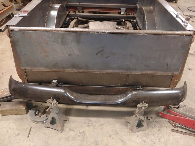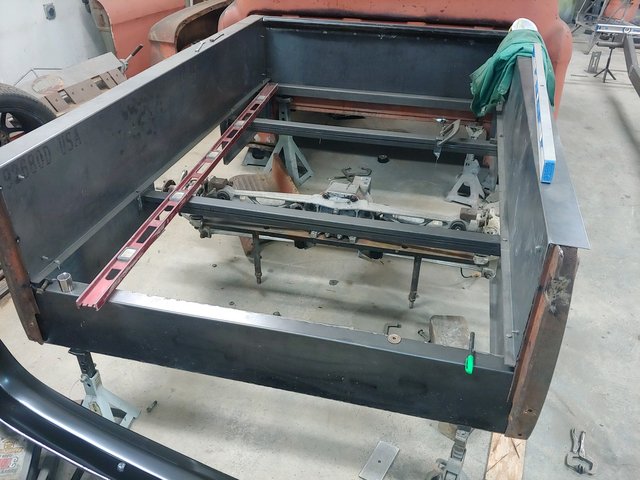 https://i.postimg.cc/26WBKnFC/AB6877...-AD90-D657.jpg Set the height for the raised floor to accommodate the new rear suspension. Decided to do a shorty tailgate instead of having a step up to the bed. |