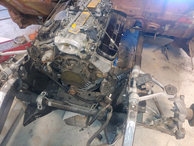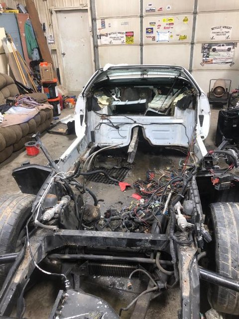 It has an LT1 383 stroker and ZF 6 Speed transmission with a dana 44 rear end. Everything seems tight but I'll open it all up later to be sure. Also going to go with a set of 4.10 gears since the ratios are so tall on the ZF trans. Pics Up on the lift to pull the trans https://i.postimg.cc/yY5mN6Qg/452-C3...-FE5-CE665.jpg Pushed it next door to pull the motor and start deconstructing the chassis. https://i.postimg.cc/jS7znVm8/AA7-E8...-D26-DD4-F.jpg https://i.postimg.cc/yNC0FQz7/9598-F...-E92-D58-C.jpg Getting the pedals and wiring. Only a found a couple of mice in there... https://i.postimg.cc/fRGJGJHC/6-AE24...6-AB9-BC34.jpg Stripping it down to the frame so we can get measurements for the new setup. The sawzaw sure makes a mess out of that dry rotted fiberglass. https://i.postimg.cc/SKcJkk3h/417-A2...48-D34-A00.jpg https://i.postimg.cc/x8pdtCJK/0544-A...-A50621459.jpg Mission Accomplished.:metal: https://i.postimg.cc/Zn5R83Rb/678-CE...362-EADAC9.jpg Next step, Start striping down the truck. |