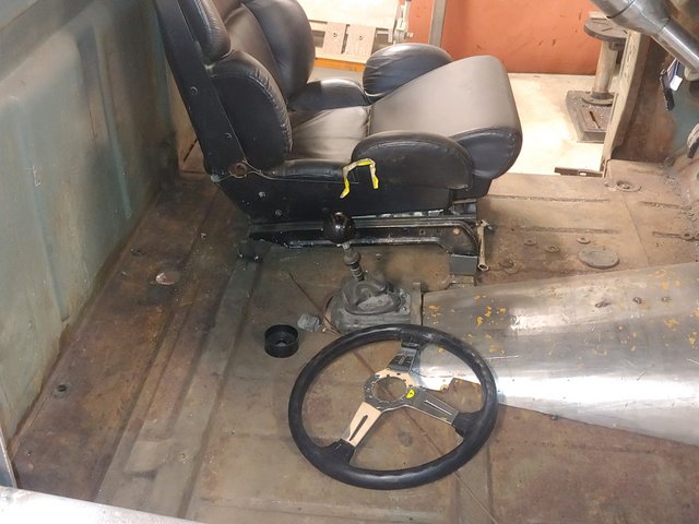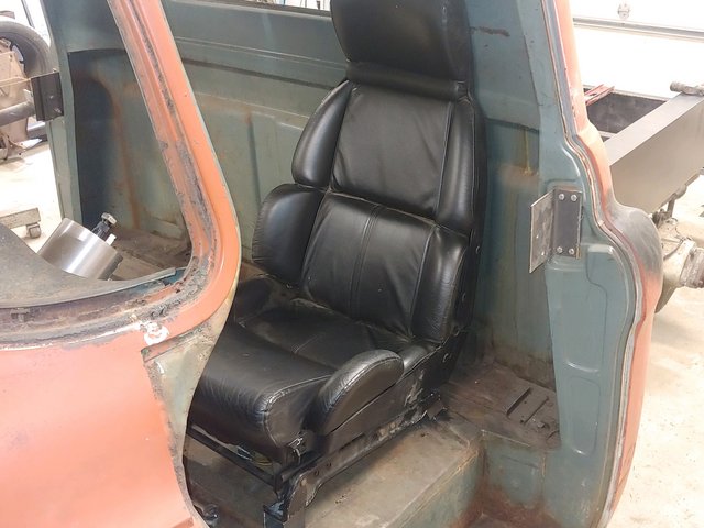 Got it installed and all hooked up. Had to play with the angle and adjust where it goes through the firewall to get the pedals to fit. Pedals are mounted and centered on the column, its tight but everything feels right. https://i.postimg.cc/brNpthv4/F527-C...1-C6-C4242.jpg Bolted in the drivers seat from the C4. The thin back makes it so I can actually lift my leg enough to work the clutch pedal. But man is it ugly. :lol: https://i.postimg.cc/Kz5mjzmn/DDFBA4...992-E7-FDC.jpg https://i.postimg.cc/j5TsRNYx/C4-B1-...0-DEC28-EC.jpg I scored a set of seats out of a cts-v thinking they would look more at home. With the added bonus of an integrated shoulder belt. They were way to thick though. I could barely squeeze behind the steering wheel let alone work the petals. These cabs are deceptively small inside. I removed the headrest and shaved a couple of inches of foam off the back of the seat to get a bit more space. Still going to need some work to be functional though. That's a problem for another day. Going to get back to working on the bed so I can feel productive again. |