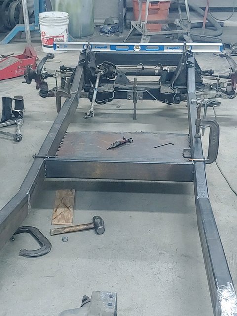 Set the frame rails 32" apart and the wheelbase at 113" Got the corvette K member installed in the new frame rails. Mounted the steering rack and started to reassemble the front suspension components. https://i.postimg.cc/nzBFq2pf/8-D25-...A7-EE7-D90.jpg The back end was a little less straight forward. We added some cross bracing and mounts for the batwing. Added a support to the front of the diff as well since we are eliminating the corvette c-beam. The original plan was to use the stock leafsprings on the corvette suspension and not coilovers. I've seen a few people run them this way. But, after some research and asking around it seems that the leafsprings are just really tough to get set up right. The coilovers will give me a lot more adjust-ability to really dial in the suspension the way I want it. So with that revelation we beefed up the upper shock mount and ordered a couple of different length coilover sets to see what works best. https://i.postimg.cc/X73JcRrH/E6-F02...B0-B518-B4.jpg Next step is to mount the motor. |