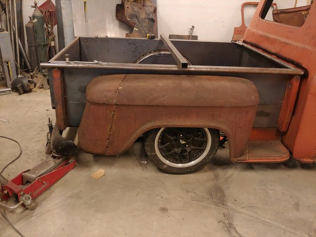Placed the fenders on the new bed sides. Because of the short wheelbase I'm running, were going to have to take a couple of inches out of the steps to get everything to line up. https://i.postimg.cc/L6pjGQbw/98-C4-...-B84-CA074.jpg With these proportions, the fender looks a bit too long to me. I think I'm going to section a few inches out of the area behind the wheel well and shorten it up. https://i.postimg.cc/jS8NwxSY/7-D1-B...69681-EDE7.jpg Got the mounting points built and the bed secured to the new frame. https://i.postimg.cc/15rDScxt/98-D16...68838-C0-B.jpg Next step is to figure out what to do with the tailgate, roll pan and rear bumper area. https://i.postimg.cc/FHF3Hdmx/D3-F41...-AE94-C6-B.jpg |