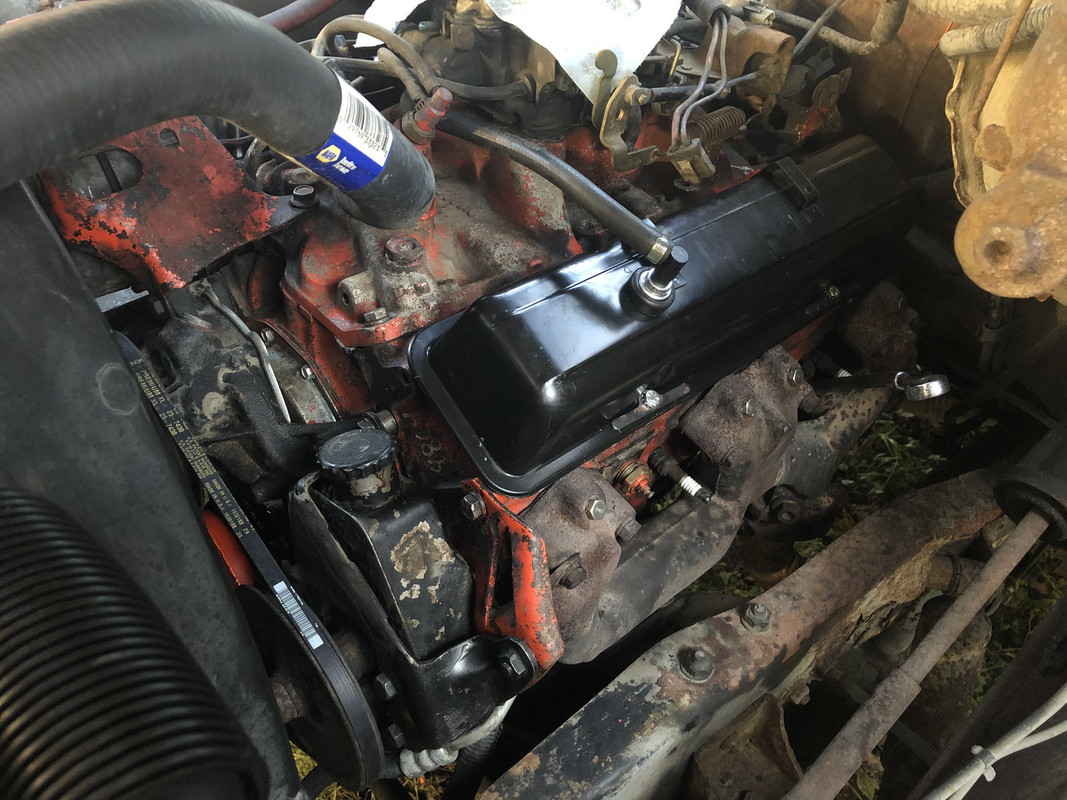 I started on the tune up today! I ordered iridium plugs, wires, cap, rotor, PCV, silicone vacuum hose for the choke tubes, valve cover gaskets, new belts, AIR delete plugs, a degrees balancer cover, ceramic plug wire boots, and MSD recurve and vacuum advance limiting kits. I started off by removing the AIR pump and cleaning the block from the badly leaking valve covers. https://i.postimg.cc/FHFCHXxv/4-E081...504-F9-E16.jpg I removed this as I couldn’t seem to figure out exactly what it was for. It was bolted to the intake just in front of the distributor, tied into the +12v and Tach wires on the distributor, had a ground wire running to the rear head, and a 2 pin plug that ran up near the front of the drivers side of the engine. Nothing around for it to connect to. Nothing that I’ve ever seen on an SBC before. Anyone? https://i.postimg.cc/3xLSyfLv/3776-B...BA08695118.jpg I’ve been having suspicions that the timing wasn’t right. The new exhaust manifold looked a little hot and the heat under the hood seemed higher than usual. I figured the balancer may have slipped, so I bought a balancer cover to eliminate that question. However, I removed the power steering for access and this timing tab didn’t look correct. However, the balancer was spot on, so I set the balancer at TDC on this timing tab, then went out and bought a replacement just to be sure. https://i.postimg.cc/T1XC8zPZ/7736-A...A8-B787-BB.jpg So it turned out that my gut feeling was right! The timing was indeed off…I just didn’t expect 14 degrees AFTER TDC off! :lol: That old timing tab was definitely off of some other engine, who knows what at this point. Oh well, problem solved! https://i.postimg.cc/cCMTdFg6/1-D5-A...09-C07-ED4.jpg New balancer cover https://i.postimg.cc/tCp2BGw6/5673-D...A6726-FC28.jpg I also had to buy a new balancer bolt for…reasons :lol: https://i.postimg.cc/mgrVGNb2/C13-AB...-B8768-FAA.jpg Cover and crank pulley installed! https://i.postimg.cc/FKdZYrdM/1-C15-...80-DBFB3-A.jpg Next up, valve covers. I had a new set off of a crate engine that I’ve been sitting on forever. This seems like the perfect truck to put them on! I’m very happy to ditch the leaky, mismatched chrome covers. Also installed new grommets and PCV valve in them. https://i.postimg.cc/FKMxcM07/66-CD3...AA7-BD7399.jpg New gaskets glued in place! https://i.postimg.cc/mD7ySmSV/8206-E...65-A6-B2-F.jpg Passenger cover installed! https://i.postimg.cc/TwvrhrXb/2-F258...82-E3-E634.jpg Driver cover installed! You can also see that the manifold’s AIR tube has been removed and plugged, the new belts are installed, and the power steering pumped has been shimmed for better belt alignment. https://i.postimg.cc/WzWFmZxX/AA059-...EF7-E03-AC.jpg |