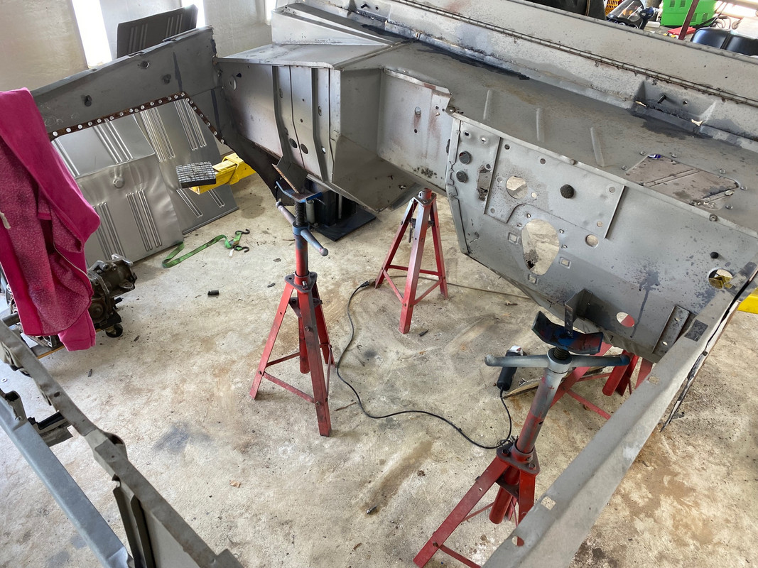 I guess in this broncos life, people in the past get these great ideas to make the truck even truckier! The front bumper horny things were from something else to mount a large ugly bumper. https://i.postimg.cc/vmp3dcFk/Bronco_frame2.jpg https://i.postimg.cc/m2YHHZkG/Bronco...ame-horns3.jpg The 200lb rear bumper was welded on https://i.postimg.cc/L5ngssVF/Bronco-body-removal2.jpg Luckily, frame end repairs are available, but the front ones, I forget which company, but they have a bunch of old frames and I bought the fronts for about 300bucks. Much cheaper than buying a new frame. https://i.postimg.cc/vZGmGf9V/Bronco_frame_specs2.jpg Getting the rear horns on was "easy", but the fronts were a little more challenging and there is a site which shows the "datum line" where things are supposed to line up. I used my laser beam to show me where the front pads for the body are supposed to go and a lot of other measuring before welding in place. https://i.postimg.cc/bN14B2BD/Bronco-frame-specs6.jpg I have already removed the rusty front wheel wells which also had the front body mounts and when the day comes to put it all together, I'll have to put the entire body back on the frame to make everything capeesh before tacking things into place. https://i.postimg.cc/HxJgys5r/Bronco_engine_bayb.jpg Gary's bugging me to watch TV, so guess I'll have to say Goodnight;) dne' |
