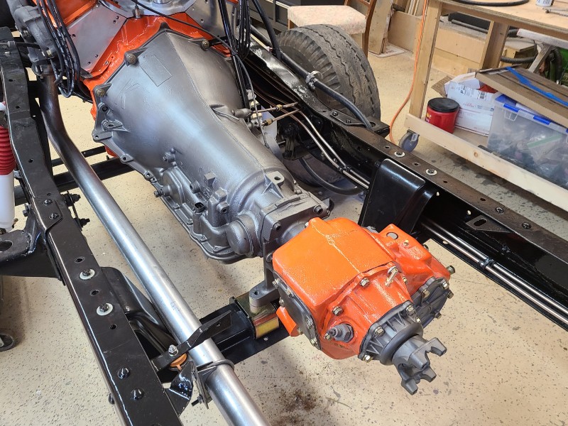 I ran my own transmission lines from Trans along frame, thru radiator support to a cooler mounted on front of radiator, bypassing radiator (as directed by my transmission guy)