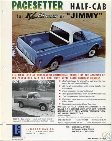 What is the obsession with a half cab for a Blazer? It essentially converts it to a single cab pickup and leaves the entire rear area exposed to the elements. Also it's ironic that Greenback TN was mentioned....I live about 6 miles from there. The entire town is all of 2 blocks long...but...they do have a post office...:lol: |