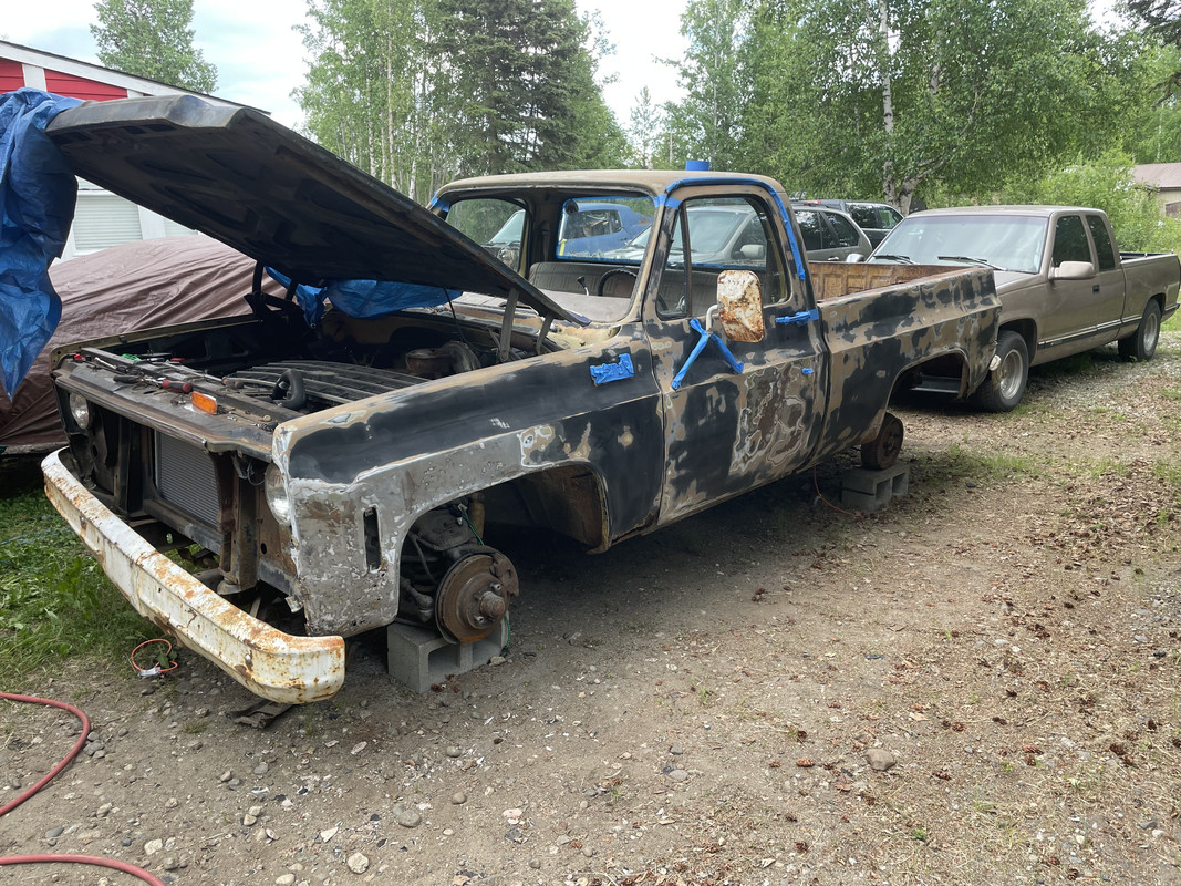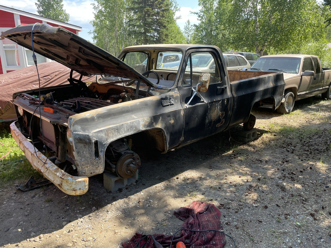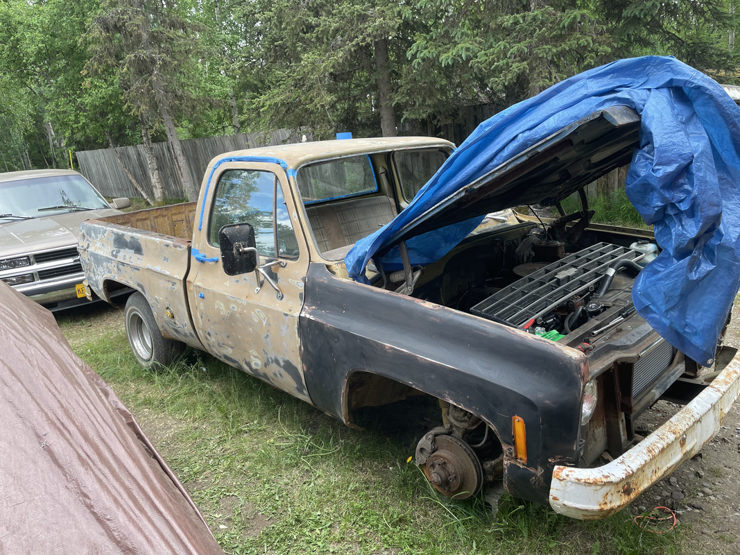 It has been sitting for a while, but apparently it drove to where it was parked. I’m not sure I believe that, but it does appear intact enough under the hood that it’s possible. This is how I found it. https://i.postimg.cc/wMSSsPS0/IMG-8404.png https://i.postimg.cc/MKBk86Q4/IMG-8405.png Pulled it out of its hole! https://i.postimg.cc/fRQGzG7b/IMG-8410.jpg https://i.postimg.cc/x1GWc6g3/IMG-8411.jpg Surprisingly, all the tires held air but one (couldn’t get the bead to seat again), so I swapped it with a spare I had. https://i.postimg.cc/6Q9FRCmJ/IMG-8413.jpg https://i.postimg.cc/k5fzyD0V/IMG-8412.jpg The core support identifies the truck as a 305 unit, but apparantly it’s been swapped out for a straight 6 sometime in its life, backed by a TH350. https://i.postimg.cc/tTJfvpbB/IMG-8409.jpg Loaded on the trailer! https://i.postimg.cc/hjYYH6Pc/IMG-8414.jpg The GVWR is 5300lbs, so it’s not a Big 10, but it does still have a 12 bolt rear axle and the thicker spring pack. https://i.postimg.cc/4yh0ZPmt/IMG-8416.jpg https://i.postimg.cc/PNsRqDw7/IMG-8415.jpg She’s home, time to clean her up! https://i.postimg.cc/3xBYPrMh/IMG-8418.jpg |