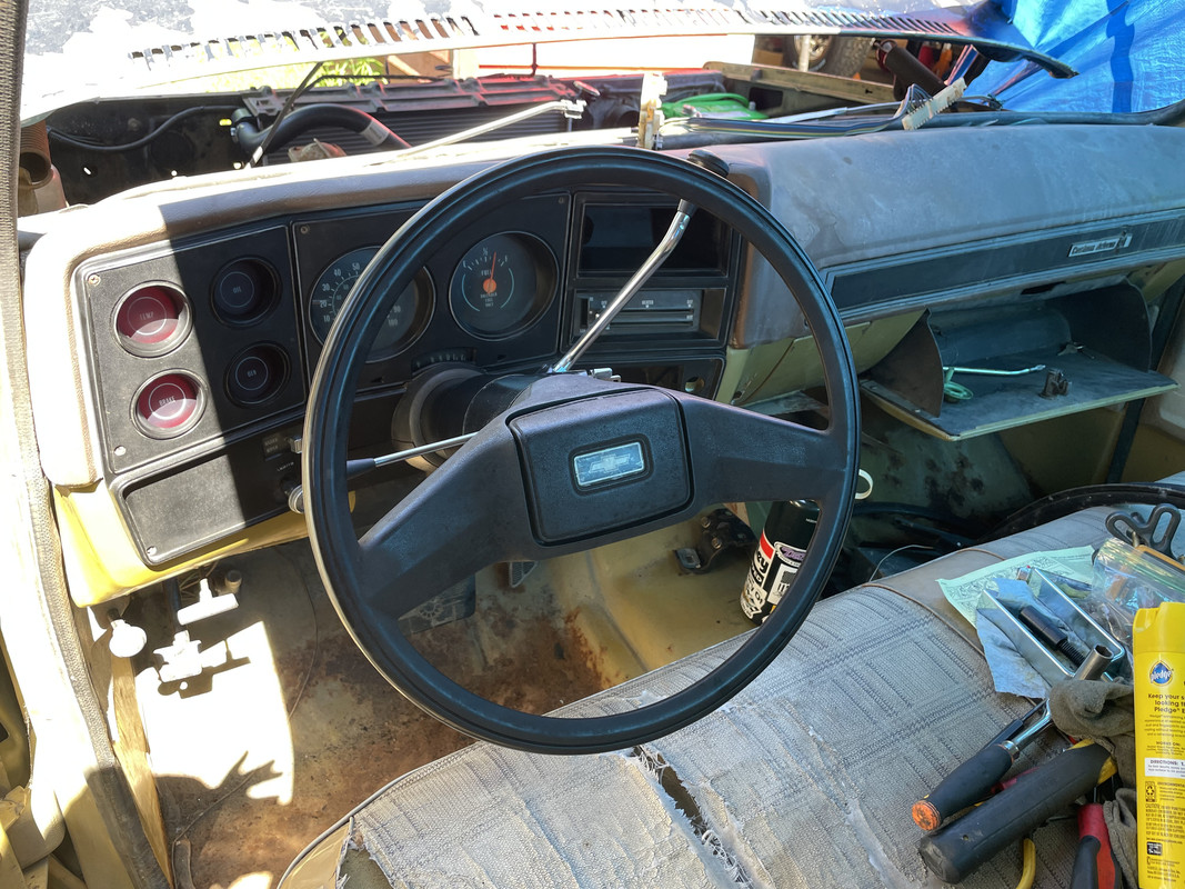 Next up on the list was to tackle the steering column. I had tried to put the original one back together, but unfortunately it was destroyed and had things literally ripped off of it. So I snagged a replacement from a t-boned Suburban!