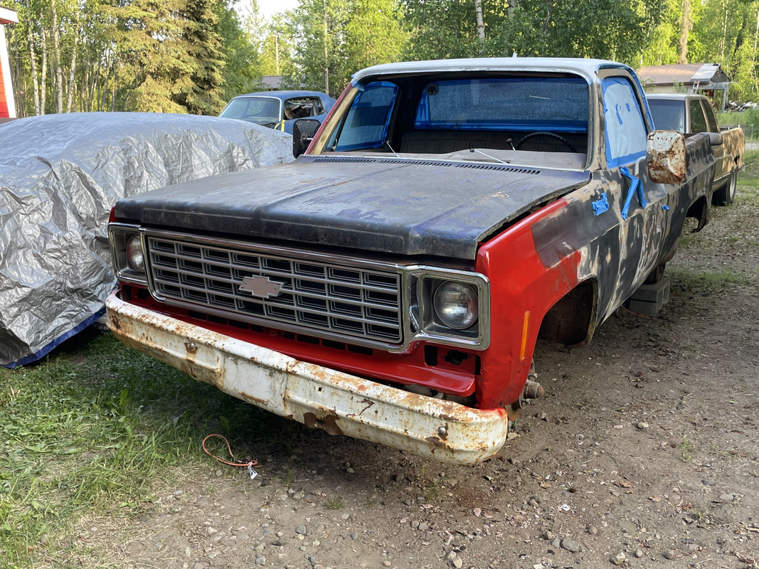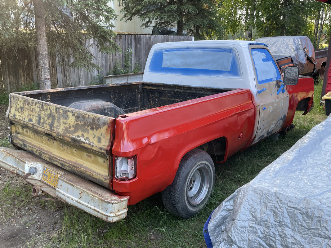 https://i.postimg.cc/5tKhZF95/IMG-8664.jpg I found a brand new front valence on Marketplace for $35! Painted it red https://i.postimg.cc/x8MBJxvg/IMG-8665.jpg I decided to make the truck look a little better. This will be a 50 footer for sure, but at least it will look like less of an abandoned vehicle in my driveway. Started sanding the body down, and knocked out some of the larger dents. https://i.postimg.cc/zGJ4vkVS/IMG-8667.jpg https://i.postimg.cc/QCGy3Q27/IMG-8668.jpg https://i.postimg.cc/7h3QYC4W/IMG-8669.jpg I didn’t like the black look of the grille, so I decided to paint it silver. https://i.postimg.cc/PqC3vVhZ/IMG-8671.jpg Started painting the rest of the truck! It will be red with a white roof and bumpers. I also found some brand new LMC headlight bezels for $50! https://i.postimg.cc/prHq72jY/IMG-8672.jpg https://i.postimg.cc/7P3Bz2vB/IMG-8673.jpg https://i.postimg.cc/c4TX9GLw/IMG-8674.jpg I ran out of paint so I’ll be picking more up tomorrow! |