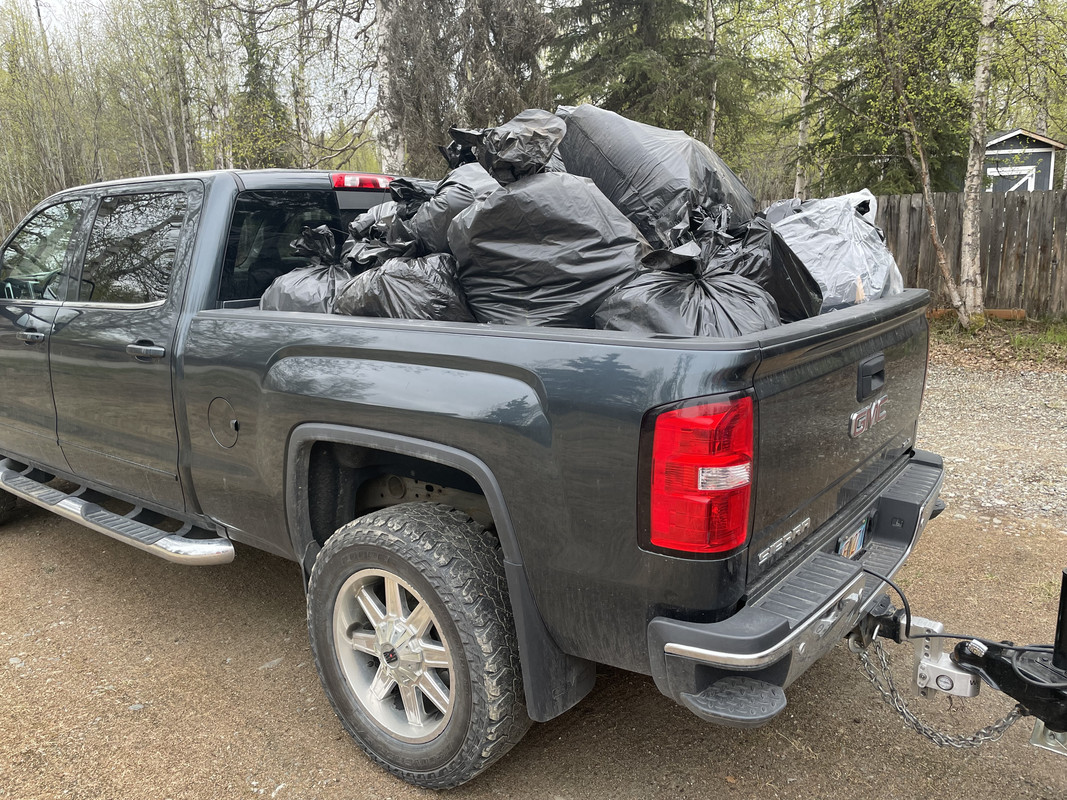 I cleaned out the bed this weekend, to the tune of an $85 dump run. They sure had the back packed FULL. This wasn’t even all of it!