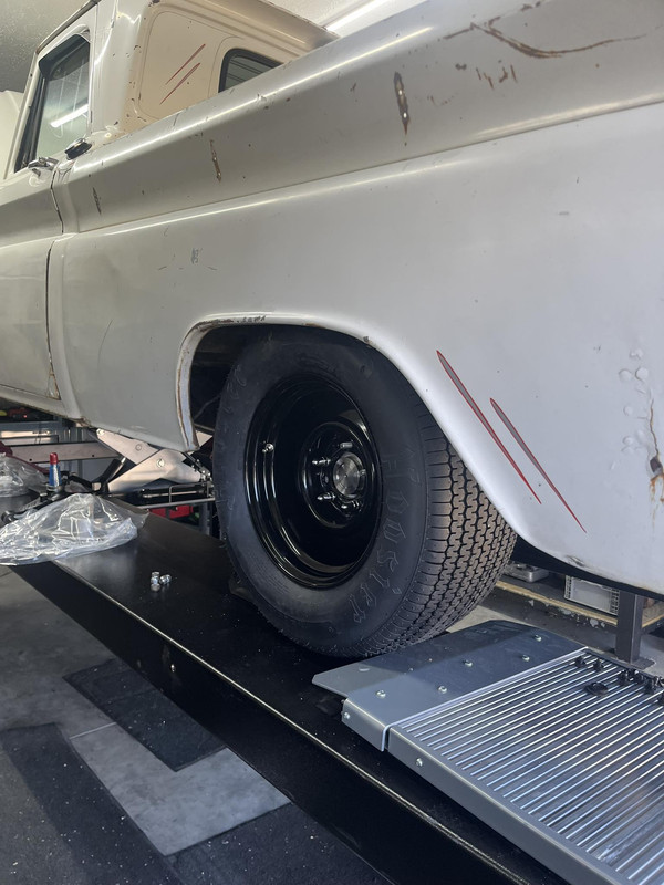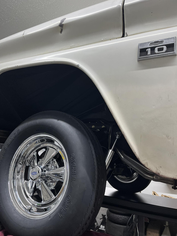 The funny thing about doing a gasser pickup is that the ride height looks stock except for the little front tire up front