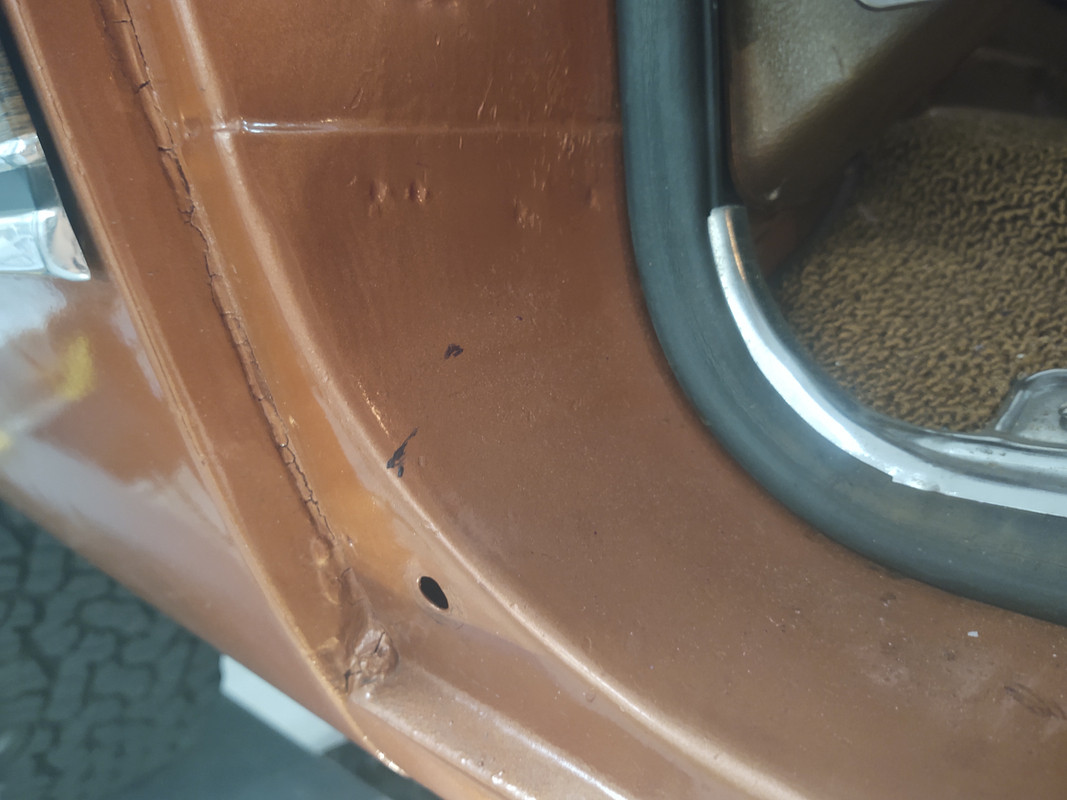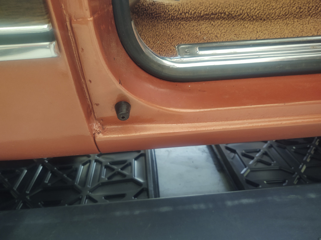 In one of the pictures, I noticed a missing rubber bumper at the bottom of the passenger B pillar. I put an NOS one I had in.