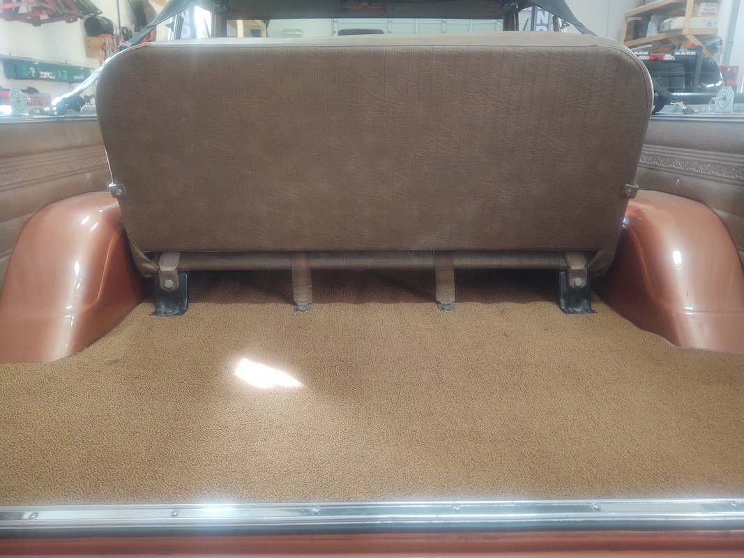 https://i.postimg.cc/4yggYFhd/IMG-20...-113806547.jpg I had a Holley rubber matt in the bed. I am reinstalling the carpet levelers, carpet, and rear seat. Still looking for the seatbelts, not sure if it had any? And the rear floor bare. https://i.postimg.cc/DwbBNfMP/IMG-20...-101849805.jpg https://i.postimg.cc/dVDzVKS1/IMG-20...-101857763.jpg https://i.postimg.cc/DwbBNfMP/IMG-20...-101849805.jpg https://i.postimg.cc/445Mv3Dy/IMG-20...-101910083.jpg https://i.postimg.cc/tCDjgkRq/IMG-20...-102611636.jpg https://i.postimg.cc/G2k0nJg6/IMG-20...-113752787.jpg https://i.postimg.cc/8588Yn40/IMG-20...-113811236.jpg |