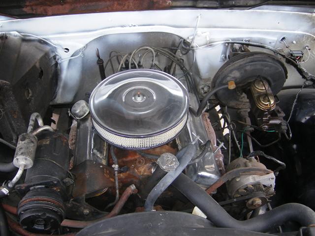 air cleaner was a freebe got a Edelbrock Carb here thats shot from results of backfiring. gotta get me some wire loom and some wire so I can hide the wires a little better. that's an old picture. i've done a little bit since then, just haven't taken any pictures. some of the hoses aren't even needed. still left over from stock intake.
