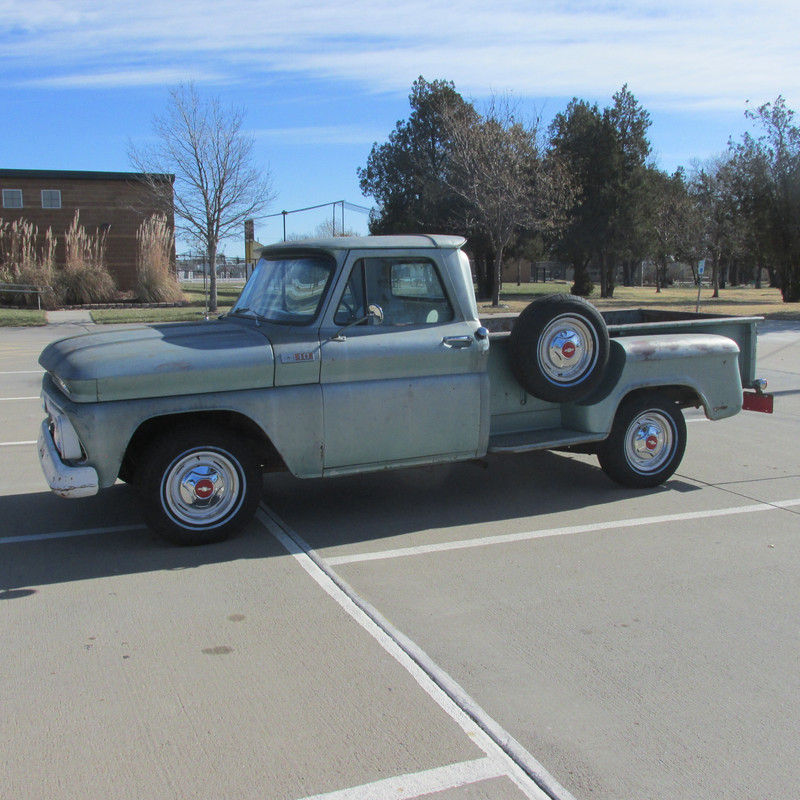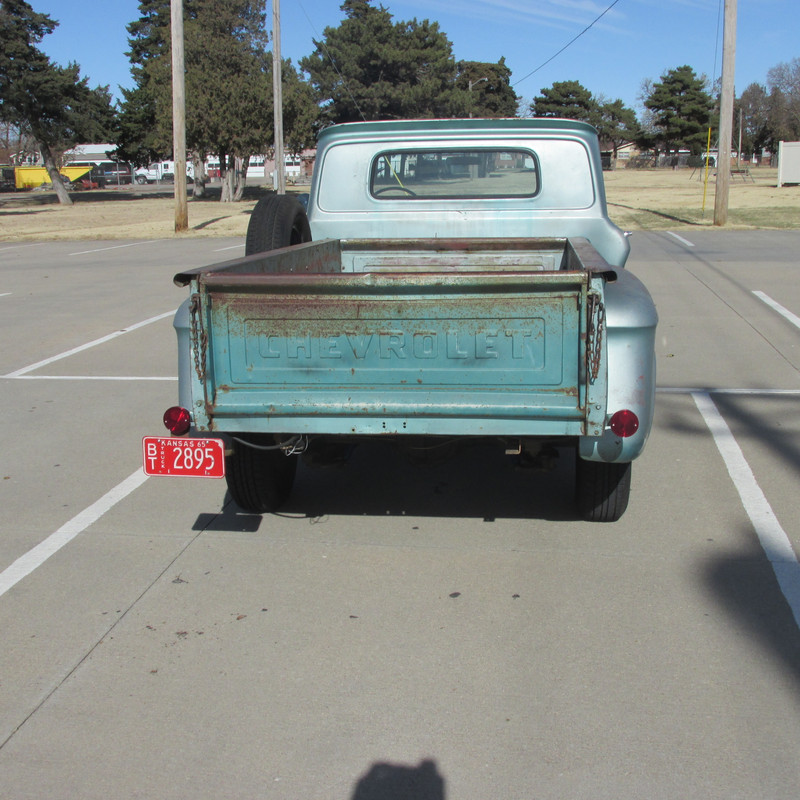 Been awhile since I updated this, but I have the 65 tagged and insured. Engine has been resealed and painted, all lights are working and I was able to take it on it's first for me drive this evening. Truck ran great and I had no problems at all. I will post some photos in a day or two. I still have some things I want to do to it yet, like have new dual exhaust put on, and a pair of three point seat belts. It has some old pipes that I had laying around on it right now.