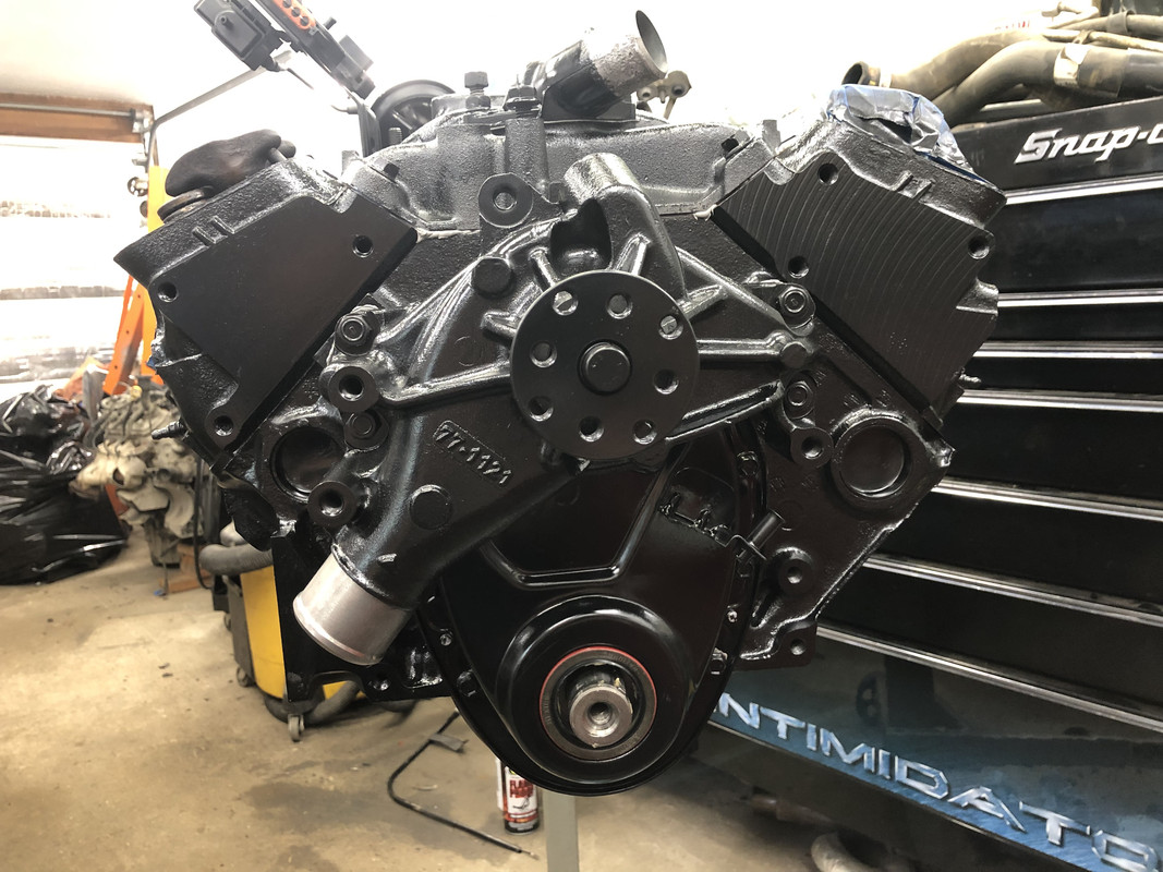 I like seeing the TBI getting all cleaned up. Looks good. It is the stock TBI water pump aluminum? It looks like it in the picture.