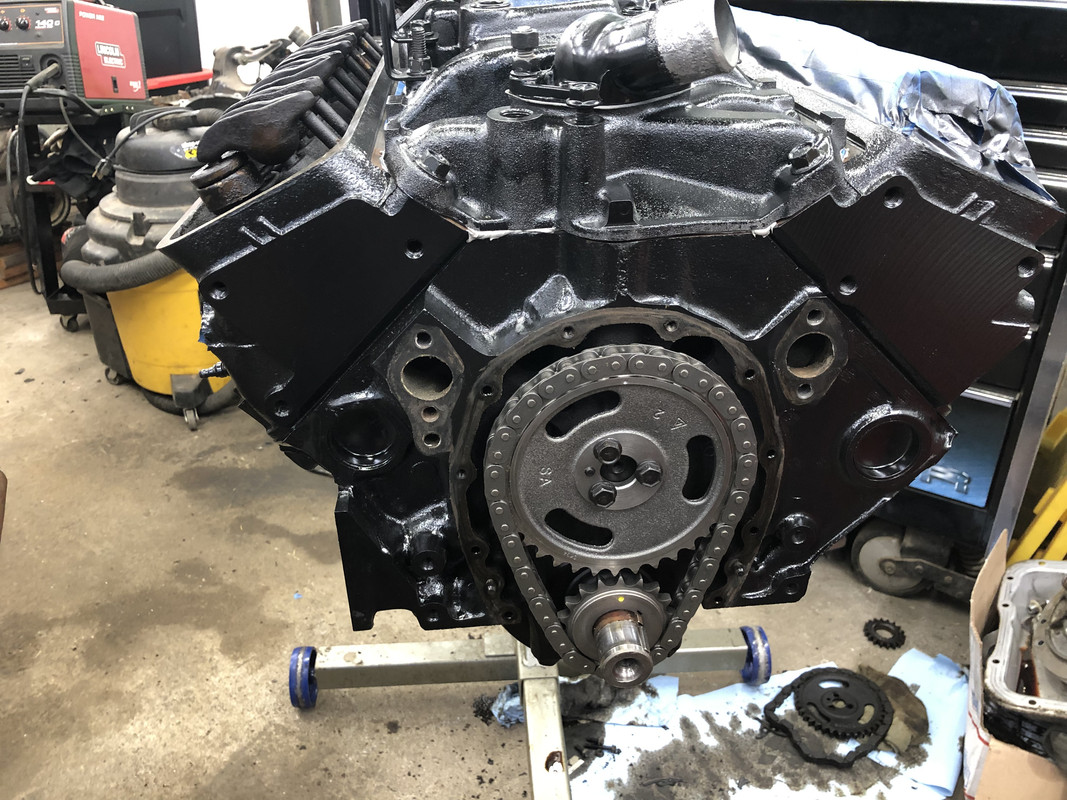 ![]() I picked up a new single roller timing set, the factory one had more chain play than I really wanted to see. I also got new upper and lower oil pressure sensors, knock sensor, coolant temp sensor, thermostat and gasket, EGR gasket, and an oil filter. ![]() New timing set installed! ![]() New front main seal, timing cover, and new water pump installed. ![]() Rear main seal, oil pan, and oil filter installed! ![]() I poured some oil in the pan and spun up the oil pump, and we have oil at the rockers! Installed the valve covers, harmonic balancer, and some of the new sensors. ![]()