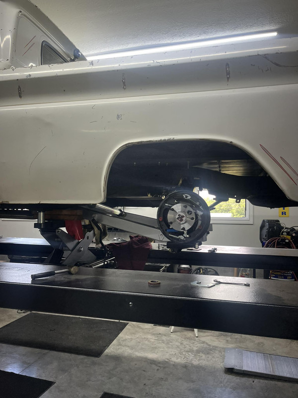 I've got to pull the upper ball joint spacers and mill some off, the camber is off too much.
