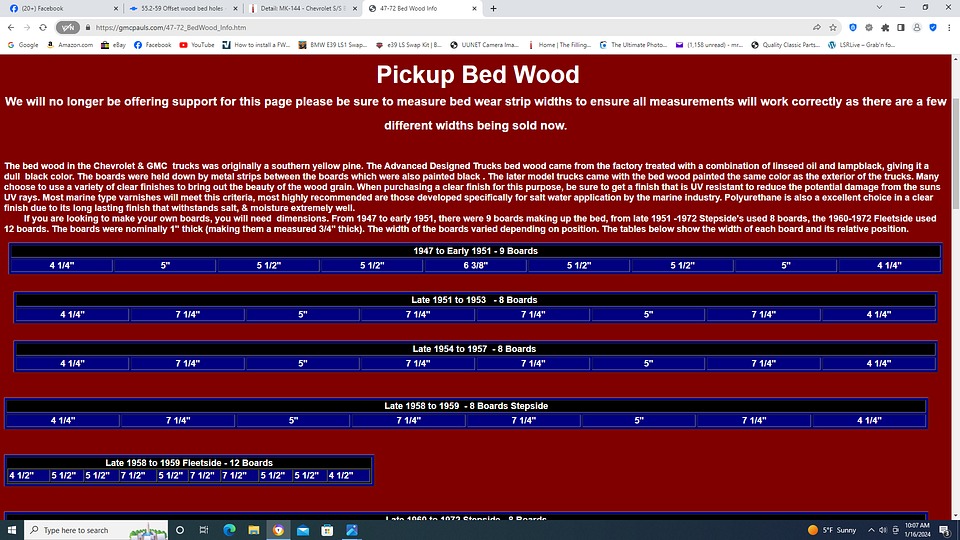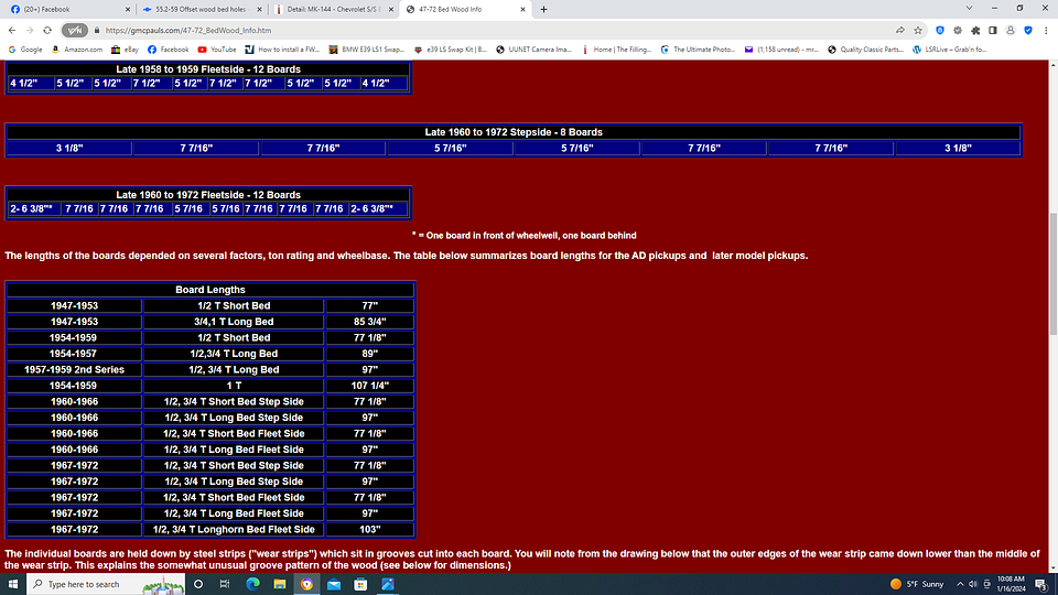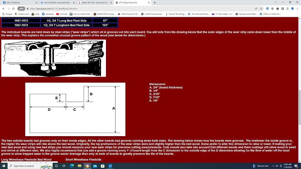 You probably want to measure from the center of matching bolt holes on the bedside and the panel to figure out where that lip goes. Then it will take having a 50 inch strip of correct thickness sheet metal bent in a brake and fit the two These are the bed wood dimensions from GMC pauls site. tog ether and weld up.![]()