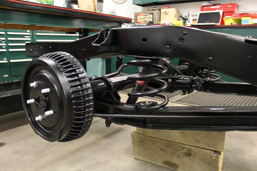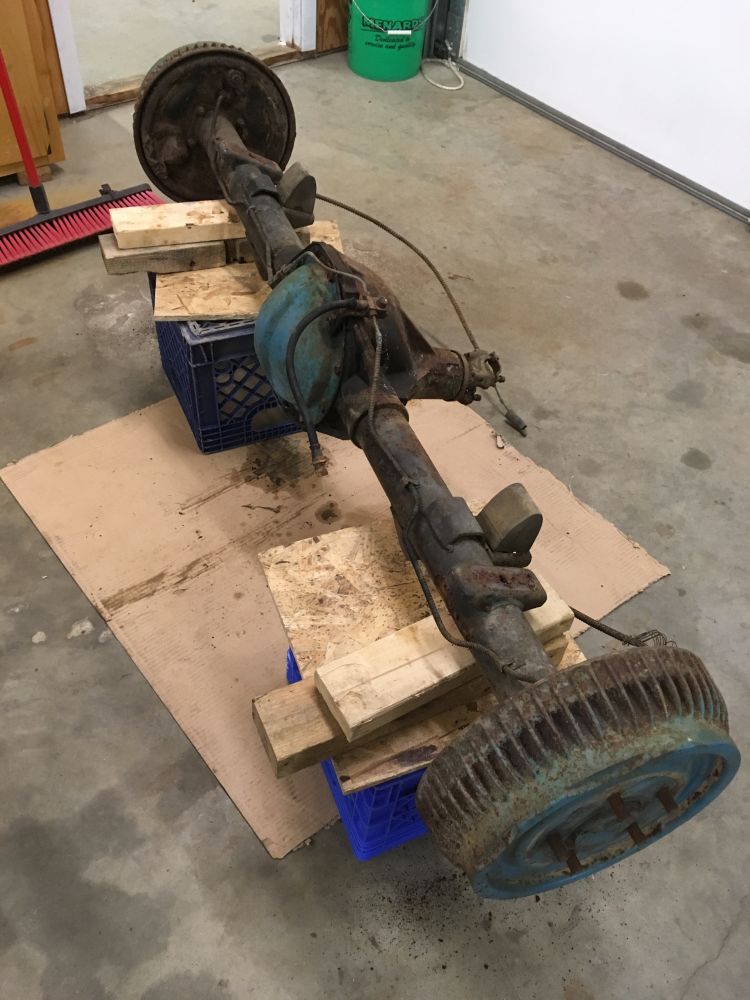 I didn't get a whole lot done last weekend other than getting the front cross member bolted on. I also removed the front cab mounts of my original '72 frame. Still need to track down a set of rear cab mounts. Picked up a nice set of trailing arms on Tuesday, and worked on stripping them down for blasting, and getting some other misc. parts ready for blasting. Yesterday, I gave ECE a call and ordered up a 4/6 drop kit, LS mounts, and some other parts. I also managed to get the last upper control arm stud that he had so I lucked out there. Stuff will hopefully roll in next week sometime. I debated buying the conversion axles and parts for my '67 rear end, but in the end I decided to take my '72 rear end and cut the leaf spring brackets off and weld on the saddles I'll be getting from ECE. My question is will I be ok matching the factory pinion angle of my '67 rear end and later using angled shims to get it where it needs to be. I know the best would be to wait until the whole weight of the truck is together and set the angle and weld eliminating the need for shims. The only issue is, I am going to be a long time from having any sort of body on this thing, and I would like to blast and paint the rear end now. Does anybody else with a 4/6 drop recall what they're using for shims and a factory rear?
