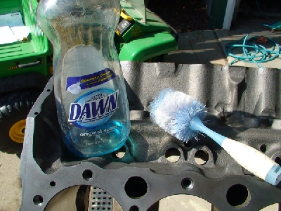 Engines are greasy by nature. Even newly rebuilt ones. So I use either brake clean or contact cleaner on mine. Acetone works too.
