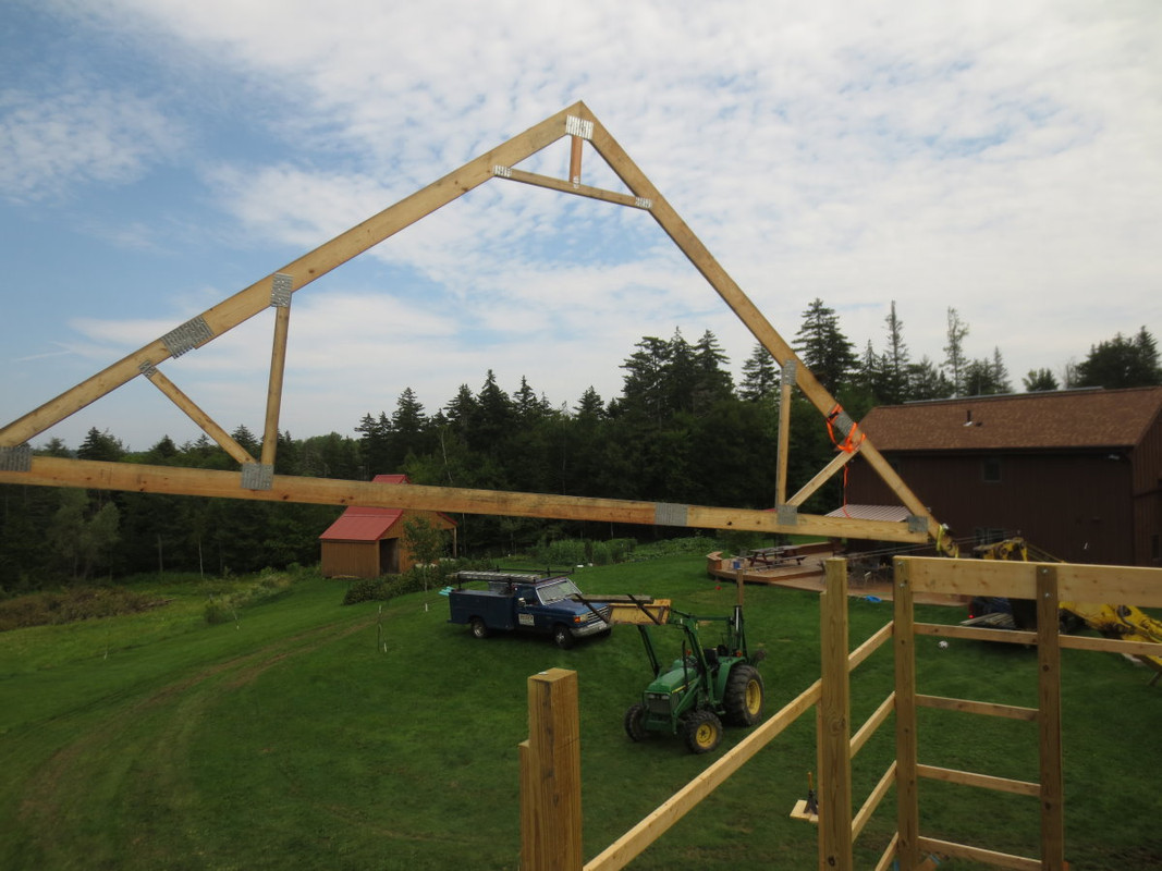 The bottom chord of the attic trusses I used are designed to carry a 40 psf live load, with an additional 10 psf dead load, and are spaced 2' OC. My K5 top weighs somewhere around 275 lbs. and would only be hung in the summer when there is no snow load. Was thinking about using 2 pieces of Unistrut about 8' apart, run perpendicular across at least 3 trusses and then suspending some kind of a 4 point hoist system from the Strut. Thanks in advance for any thoughts. Just wondering if you think that would work. ![]() ![]() ![]() ![]() ![]()