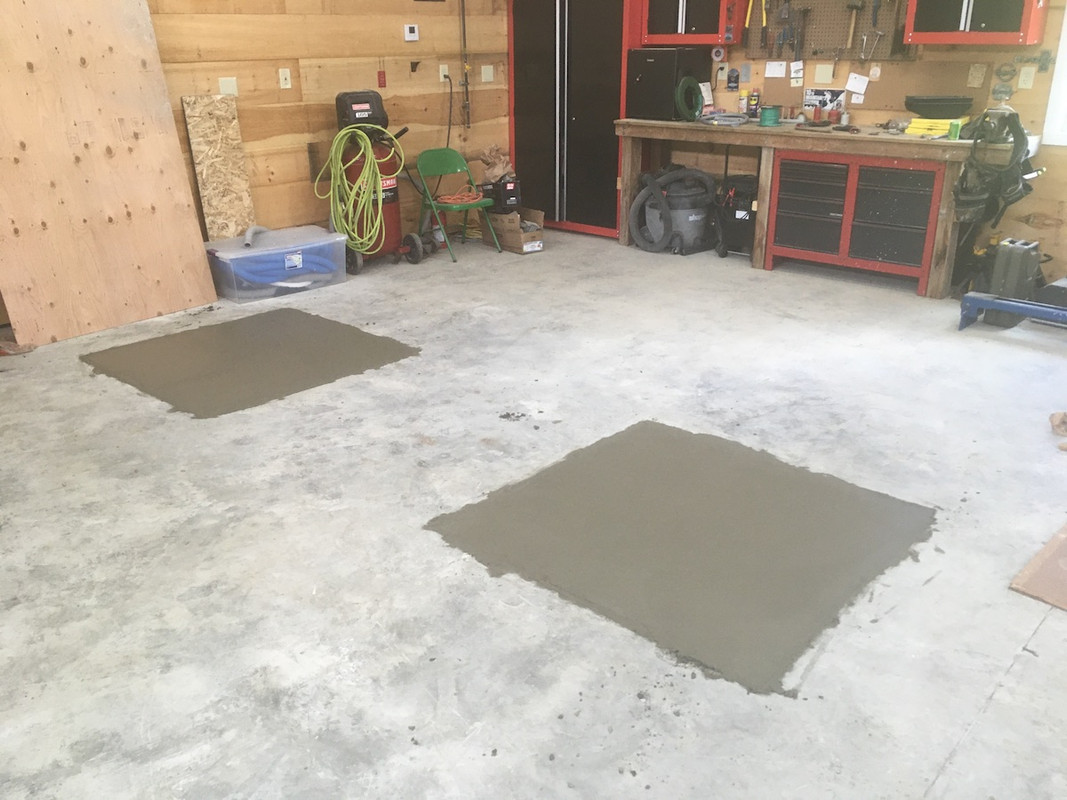 Found a decent used Rotary SP09 back in April and thought it would be an easy install on my 3 year old cement pad. Had the proper thickness and 3,000 PSI reinforced concrete, but I had some small cracks in the floor and a 1" void underneath the pad in some places. I had a Rotary installation company consult on the install and they could have made my lift work, but recommended I just cut out two 4x4 holes and repour. So that's what I did. Had a friend in the cement business and borrowed a concrete saw and rented a jackhammer. Took two days to get the holes cut, cleaned and pinned with rebar. My buddy came in on day 3 and poured the new pads with 5,000 psi concrete....9 inches thick.