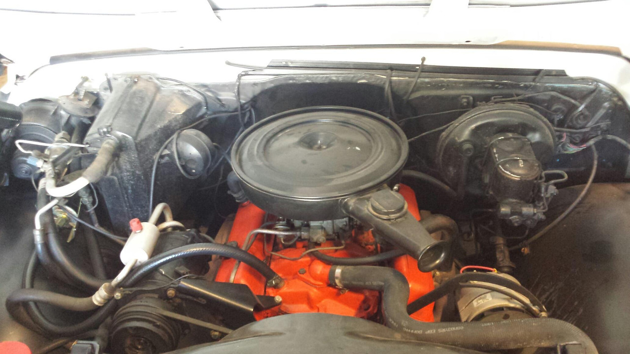 Still available 350/350 runs good with all accessories and brackets. Air cleaner including heat riser to oil pan, AC compressor, power steering, alternator and all brackets. Starter and exhaust manifolds.