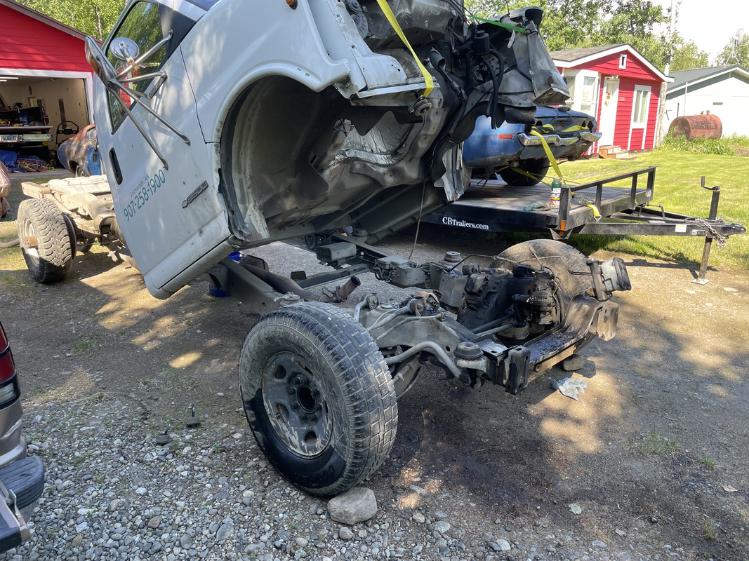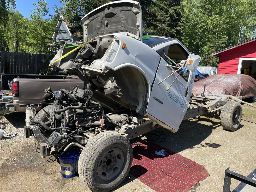 ![]() I’ve got the teardown on these figured out now! ![]() This one was even easier because it was previously a box van. Need room? Tilt the cab! ![]() Ready to be pulled! ![]() ![]() She’s out!