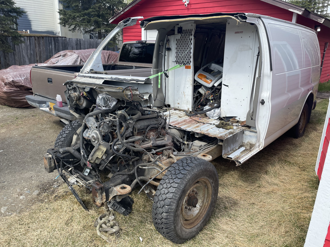 Don’t laugh, I changed my mind yet again! Found a 1997 Express 3500 that ran and drove with 135,000 miles for $900. The previous van had engine issues, this one will be drop in. I now have 3 Vortecs and 3 4L80E’s!