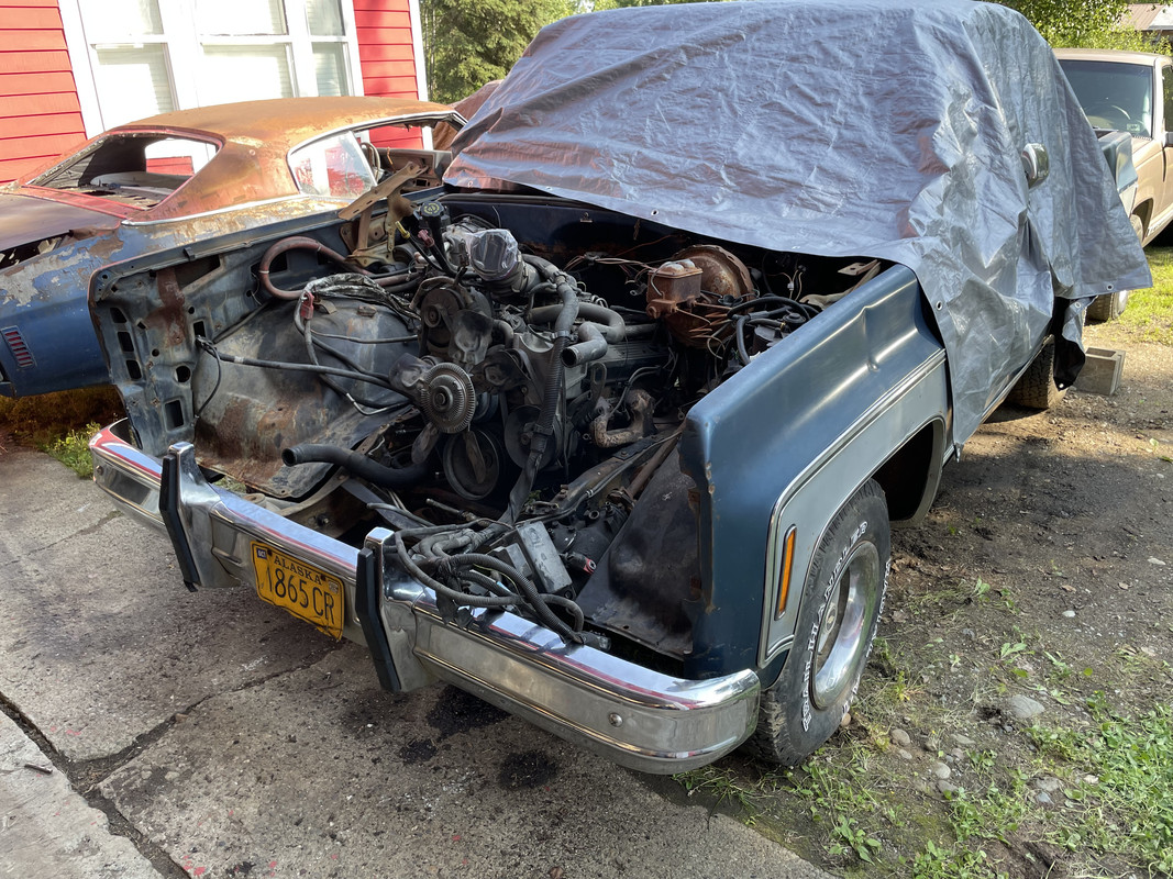 Ultimate plans are a stock-ish Vortec 350 that’s sitting in my shop, and one of the two TH350’s I have, most likely the one that’s already in the truck. I will also probably do a 4.5”/6” drop, and undecided on using the rally wheels or going with an aftermarket set. I have a 73/74 grille kicking around the shop I might throw in as well. Other than that, just clean it up and drive it. The drive up! Left the house at 4:00 am ![]() This is the picture from the ad. ![]() Lookin’ a little sad there buddy. Let’s get you home. ![]() All loaded up! ![]() Beautiful views the whole way! ![]() ![]() Got home and started cleaning it up! ![]() ![]() Set the hood back on. Cleaned up pretty well! ![]() ![]() Going to hit the interior next. Half tempted to find a bucket/console set from a suburban. ![]() BIG 10!