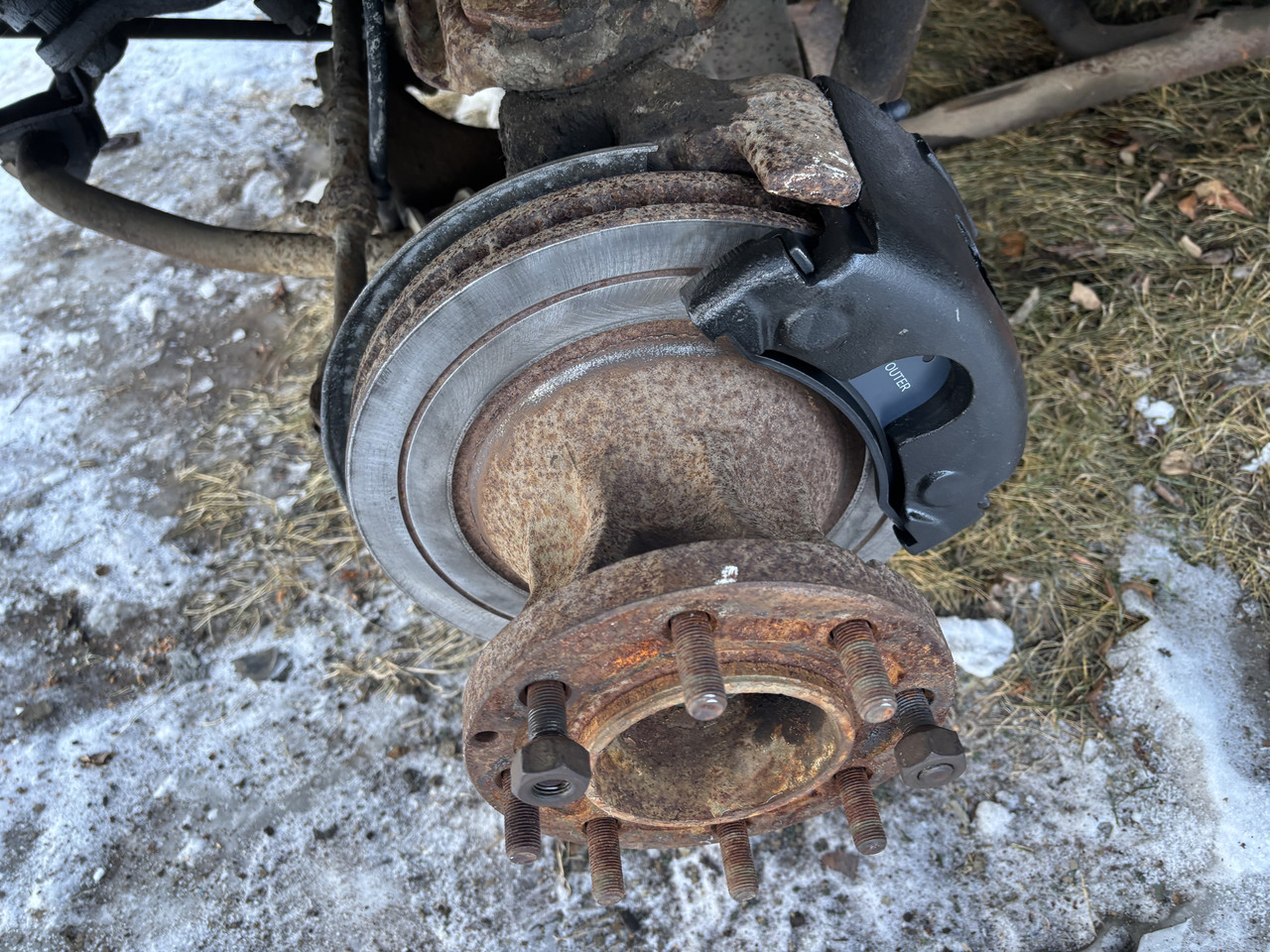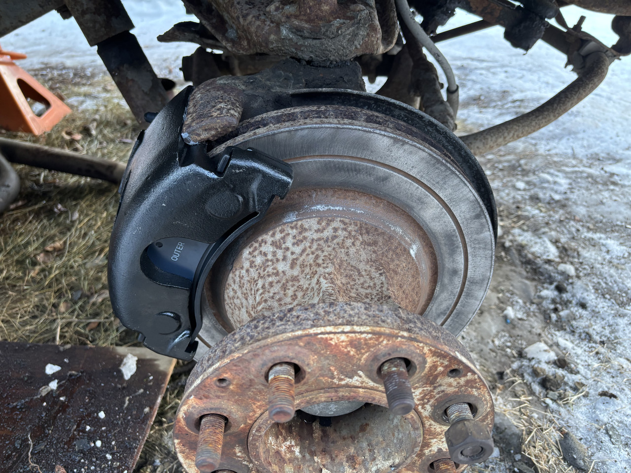 Cleaned up the brake rotors on both sides, they actually seem to not have much wear. Must have been replaced like the rear shoes were. Installed the new calipers as well ![]()