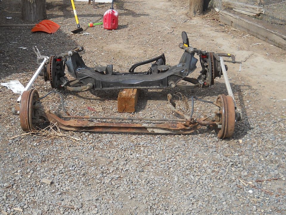 not that it really matters but if it has a separate shock then it can be removed and a solid link can be placed in it's spot to pin the suspension at that particular ride height. it is helpful to do this first on the donor while the engine, trans, etc are all still in the vehicle because the suspension is basically in the middle of it's travel there. so, you want the same as that when it's under your truck. it's always best to keep things in the zone they were engineered to work best. if it has struts that bolt onto the body at the top instead of being an assembled part of the suspension when it is removed, then build some sort of a link that will bolt onto the suspension parts to keep the control arms locked at the stock ride height. something that will come out of of the car with the suspension. a bolt on link can be removed for doing work, but installed whenever you need so that you can re-create the stock ride height