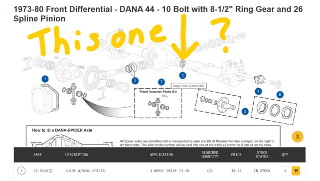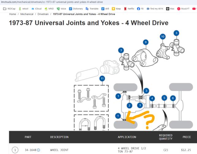 Good idea. Do you think this is the right u-joint? LMC shows the axle u-joint for 1973-87 4wd, 1/2 ton. Mine is a Dana 44 8F