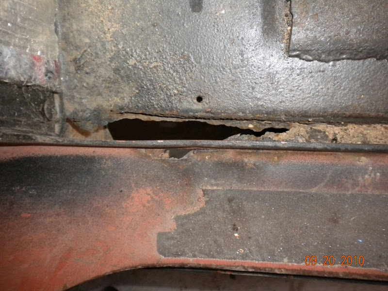 I found another issue with the frame... it is fixable if I keep this frame. I am waiting on machine work to get done on the block for the Yukon, so I had some time to spend on the body of the Burb. I started by checking the cancer on the drivers side floor. I knocked several holes through the metal with my wire wheel. On the passenger side there is a screwed-down patch that was hiding under caulk and insulation. So along with the 4th door the Burb is gonna get a whole new floor and rockers... Then my distraction woke up... ![]() I am really procrastinating getting my welder working... I need to get the body braced before I cut anything out.