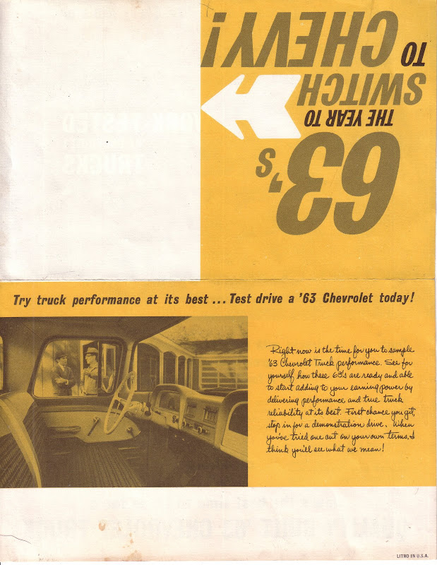 1963 Chevrolet Truck Literature LINK: https://picasaweb.google.com/113840717762774560215 YouTube Channel with 20+ Original Chevrolet Truck Salesmen, Mechanics & Service Department Training Slideshows. https://www.youtube.com/results?sear...otruk63&page=1 |