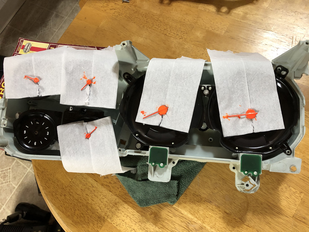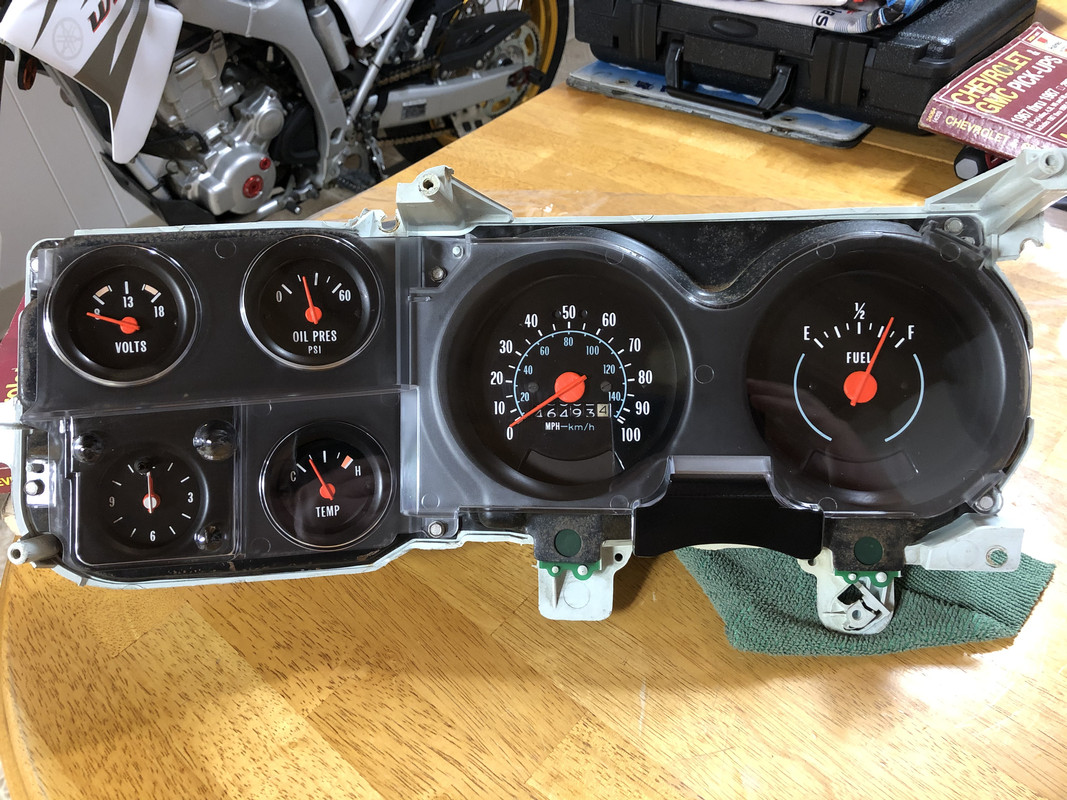 I've been posting this thread alongside the LS1Tech forums as well. Another member there, RedXray, turned me over to these Glenn's Auto Performance throttle cable brackets, specifically meant to use on TBSS/NNBS intakes like mine. ![]() We speculated that the position of the bracket (plus the fact that it has a slotted adjustment) sat further back in relation to the Nick Williams bracket, and should eliminate the need for a TB spacer. The bracket also has the Silverado style cable mount, which theoretically should let me use the 99-02 Silverado cable I originally ordered. So what did I do? I went out and destroyed the 3-month-backorder 98-02 F-Body cable in the name of science. I think this may actually work really well. The 99-02 Truck cable has two “stoppers” on the pedal end of the cable, as seen in the pictures. The little plastic clip that inserts into the pedal arm is on the end one. Installed like this, the secondary “stopper” won’t allow the cable to retract enough to bring the pedal all the way up. So, the F-Body cable donated its plastic clip, installed in the inner “stopper”, which drastically shortens up the cable and also allows the pedal to come back up to the top fully. If this works, the extra cable past the inner stopper can be removed later. ![]() Since the cable is now much shorter, I moved the TB cable end up one hole in the throttle body. As you can see, this puts the cable a little bit further back than the Nick Williams cable bracket, which appears to be nearly identical to where the Glenn’s cable bracket appears to sit. Even if it does end up in the same spot, a 3/8 to 1/2” TB spacer should easily take up that length, and the adjustability of the Glenn’s cable bracket should allow me to fine tune in the correct amount of free play. So, I ordered a bracket! ![]() A few other things showed up alongside it! A new coolant reservoir, new cap, RH battery tray brace, and a new PCB for the gauge cluster! ![]() I also got a set of battery terminals for the dedicated Holley wiring. ![]() The GAP bracket showed up, and it is a NICE piece! I was all too happy to throw that Nick Williams bracket in the garbage. This gave me the proper throttle cable free play and still has plenty of adjustment left! the 99-02 Silverado cable worked great with the 2nd clip on the pedal end. Gets to full throttle with no pedal modification. ![]() Next, I mounted the RH battery tray support. This will eventually get modified to house the new style Silverado air filter. ![]() The new coolant bottle was mounted next, with a new overflow line installed! ![]() Following this, I came back inside to focus on the gauge cluster. The needles were pretty faded, so I decided to try my luck repainting them. I picked up some Neon Orange paint from Walmart, which also has the interesting effect of glowing under blacklight. I also picked up some LED bulbs for the cluster, heater panel, and wiper switch. ![]() Starting off! Here, you can see the needles are almost faded to white. The lens is also scratched beyond saving. ![]() Completely disassembled! ![]() The old PCB was unusable also. ![]() Cluster housing cleaned and dried! I would've replaced this one also as it has a few superficial cracks, but a factory clock housing is not reproduced and I didn't want to perform the same modifications to make it fit. ![]() Cleaning and surface filling all the contact points, and coating all exposed points with a thin film of dielectric grease. ![]() The new PCB is laid out! ![]() All the retainers and bulbs installed! ![]() ![]() Gauges cleaned and reinstalled! ![]() Now for the real tedious part, don't get neon paint everywhere! All the gauges except the clock were painted in place, the clock needles were removed and painted individually. It's not as professional as I would've liked the results to be, but it still turned out good! An airbrush would certainly be the way to go for a professional restoration. ![]() I ended up going with two coats, and this is the result! ![]() And to button them up, the gauge bezel and a brand new lens is installed!