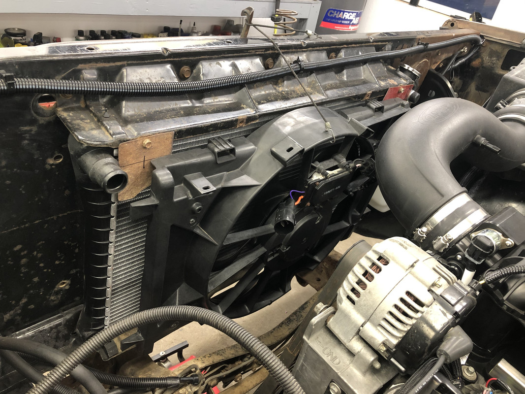 Time for a little change of pace! I’ve been planning on running an electric fan, and been doing research on what everyone seems to like using. Ford Windstar seemed to be the pick for Square Bodies, but I wasn’t a fan (pun intended) of how it mounted or had excessive bracketry all over. After junkyard hunting and looking up endless specs on fans, I settled on a 2010-2012 Ford Fusion fan. The fan seems to fit the radiator opening well, I believe is PWM capable, is available in much newer vehicles, and it drops right in place at the bottom, just like the factory shroud. I’m not kidding! I’ll be having a few pieces of sheet metal bent up to properly fill the side and top gaps, but I feel like this will be a great fit.