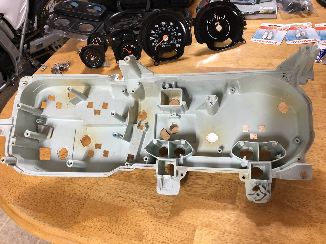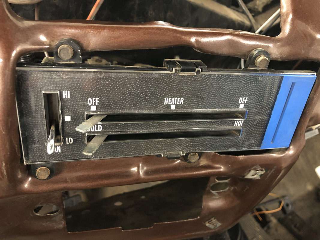 Several more parts showed up for the weekend! Exhaust elbows, catalytic converters, dash clock and door switch harnesses, and another electrical connector all came in! ![]() I started on this little side project since it’s been bothering me, and I know I’ll need to tackle it before the dash is buttoned up. I could have sworn that a few years back, individual components for these HVAC control panel were available, but now you can only buy a whole unit. This one works fine, but has the paper trim worn out and the knobs are missing. Instead of shelling out $100 for a new one just for a piece of paper, I’m going to refinish this one. ![]() This one is in bad shape. ![]() I have no idea where I got this from, but I had some very thin, textured plastic sheeting laying around that I knew I kept because I would need it some day. Well, that day is here! ![]() Overlaid, and cut out a template. ![]() Test fitting, it needed very minimal trimming! ![]() Lens cleaned and reinstalled. ![]() And new knobs! It looks much better than before. ![]() I also ran the door pin harness and clock harness.