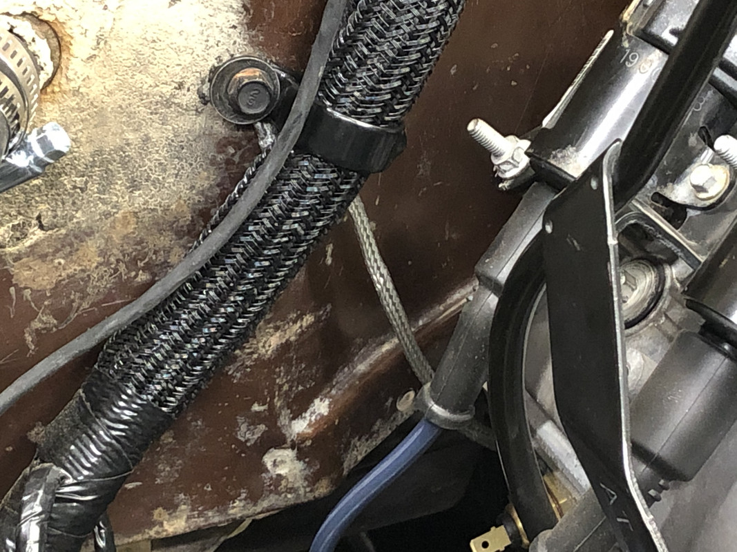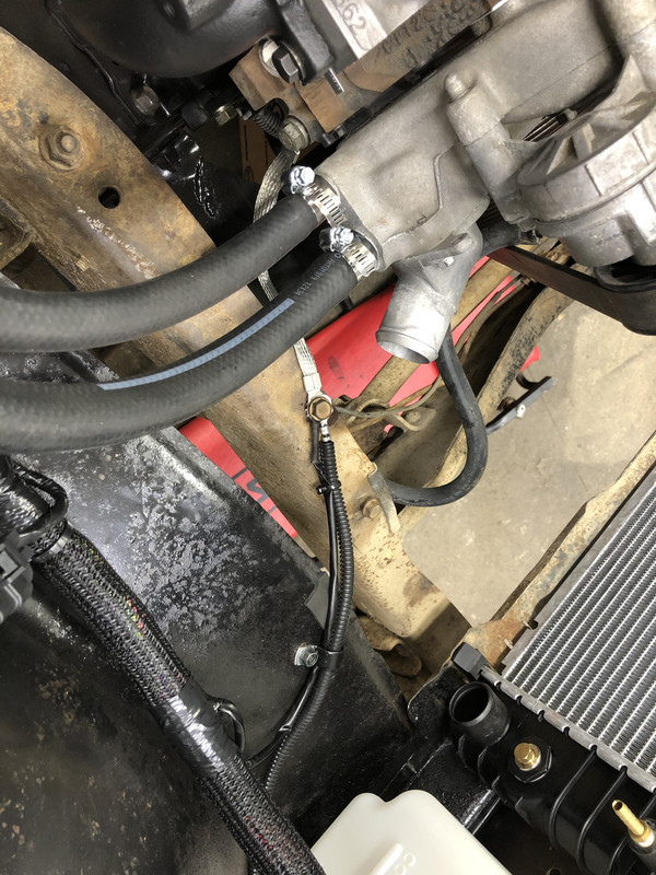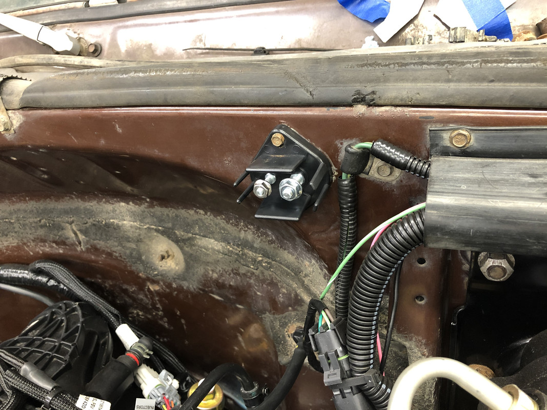 ![]() I picked up a few things I forgot about yesterday, namely fluid for the transmission, a few various sizes of cable routing clamps, and ground straps for the engine to firewall, and engine to frame grounds. ![]() After confirming that my engine to frame strap was the proper length, I put an end on the Terminator X's ground wire. ![]() General routing of the engine to frame strap. ![]() All three grounds installed! The third is the secondary ground for the headlights, from the core support. I also installed a cable clamp and a piece of sticky padding to keep the wires from chaffing on the fenderwell edge. ![]() Installed a clamp on the throttle cable once I was satisfied with the routing. ![]() Installed better looking cable clamps on the Terminator X harness running along the firewall, and also the engine to firewall ground can be seen peeking out behind there. ![]() I installed another cable clamp at the rear of the intake to support the oil pressure and unused knock sensor wires to prevent wire whip. I also put another piece of sticky padding under the knock sensor wire cap to prevent rattling. ![]() And the same for the injector wire connector where it rests against the back of the intake! ![]() And finally, a cable clamp for the MAP sensor wiring. ![]() One thirsty transmission. The SM465 takes 4.2 quarts! ![]() I think I forgot to call this out on the previous post, but a new junction block was installed on the firewall. ![]() The remaining two LED's were installed in the wiper switch and heater control units. The phone camera doesn't pick up the light as well as I would like, but they're very well lit and the light seems to distribute pretty evenly. Bright and white! I can't wait to see what the whole dash will look like with the gauge cluster installed! ![]()
