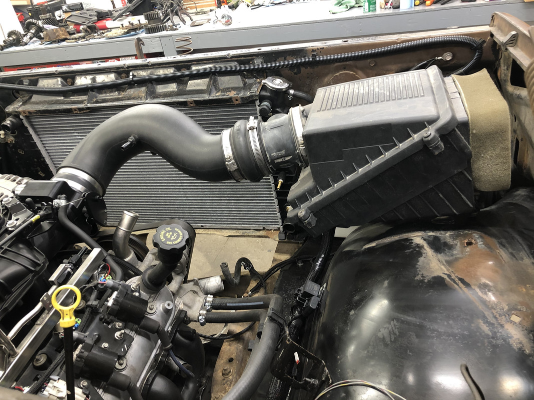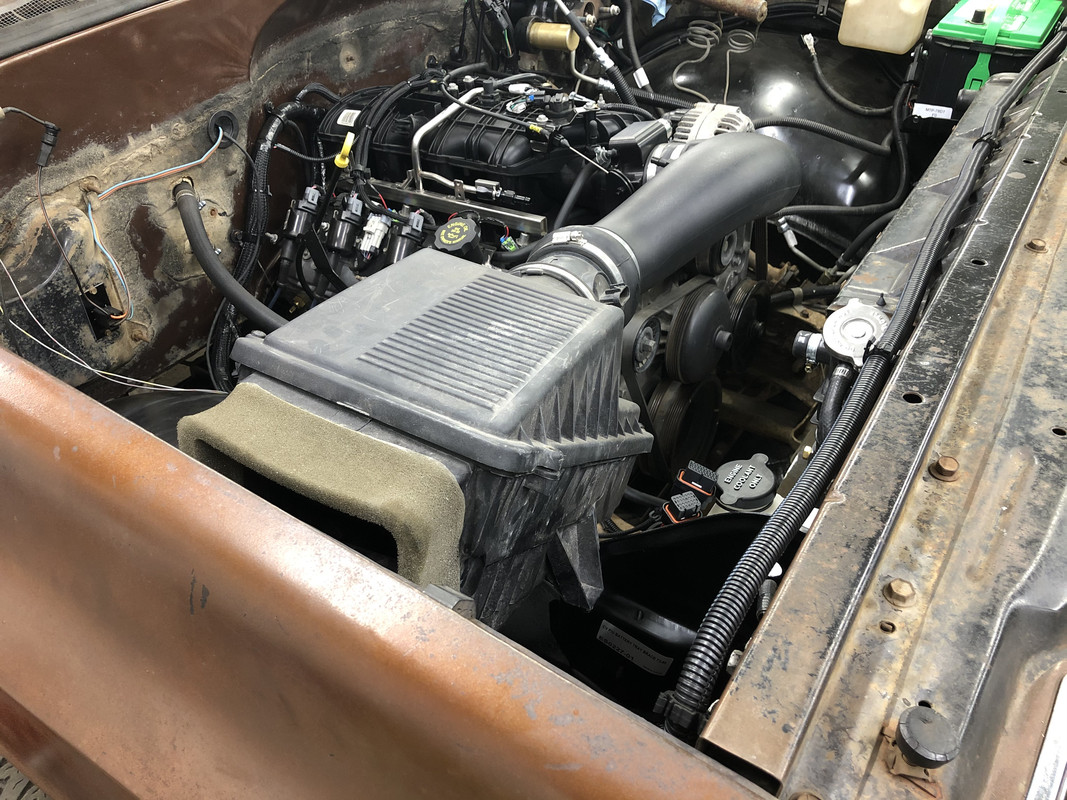 As far as those LED lights, I think these are the way to go. I've used them on 10+ vehicles now, even 4 wheelers, and haven't had a single failure. I find them on ebay, I believe the seller's name is SOCALLED, but I think there's more than one seller with this style. It's usually a black box with "G6" on the side, although it looks like they may have white boxes now. regardless, they're easy to find in whatever socket size you need, just simply type in "H4 led fanless" (or whatever type you need) and they come up. They're about $41 for a pair, very reasonable.This weekend I started on rebuilding the hydroboost unit, which probably really didn't need it, but I've never done one before so I wanted to try it. They're almost stupid easy! Disassembled and painted the housings! ![]() ![]() New seals on the actuator shaft. ![]() Paint is dry, lets get this together! ![]() ![]() Guts installed, housing bolted back together! ![]() Gas canister installed! ![]() I also started running the wiring for the Holley Terminator X. I greatly underestimated how long the harness is, so I made a change of plans and decided to run the ECU outside, likely in about the same place that the air box will end up being. ![]() Hydroboost is installed! The lines fit just about perfect! ![]() The engine bay as it sits now! ![]()